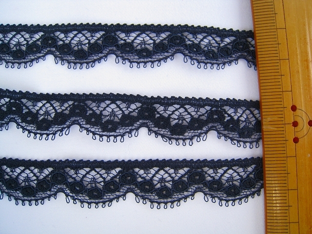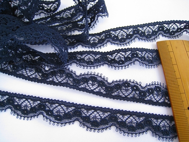 ヴィンテージレース 濃紺 幅1~1.5センチ×2m35cm アンティークレース