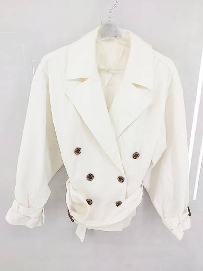 ◇ ◎ DOUBLE STANDARD CLOTHING ウエストベルト付き 長袖 ジャケット サイズ36 ホワイト系 レディース
