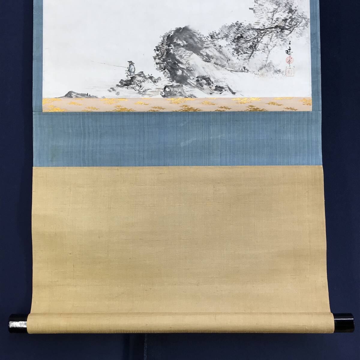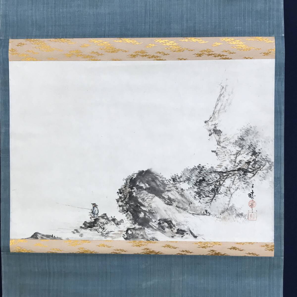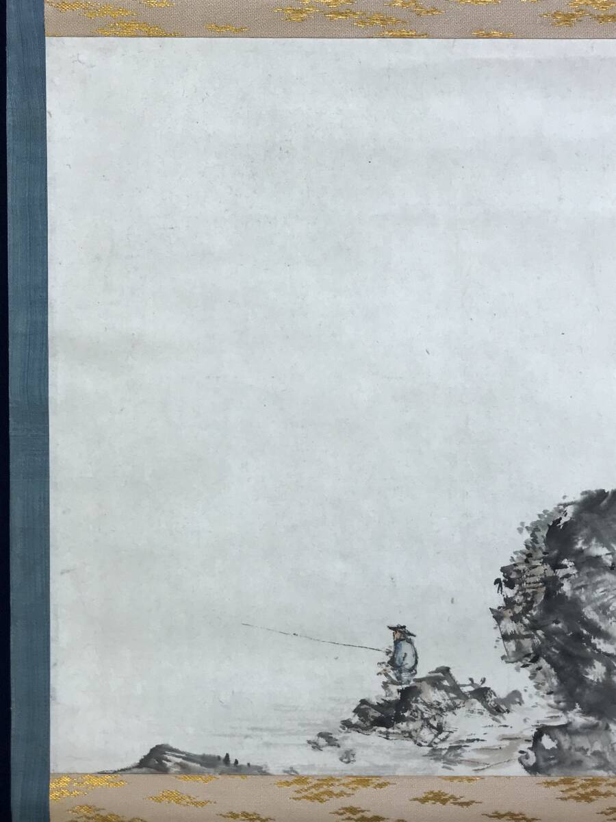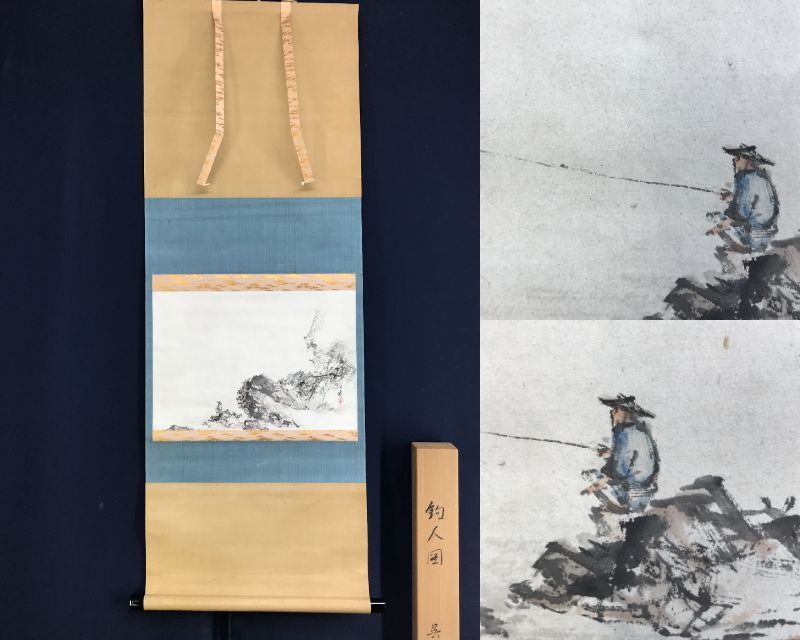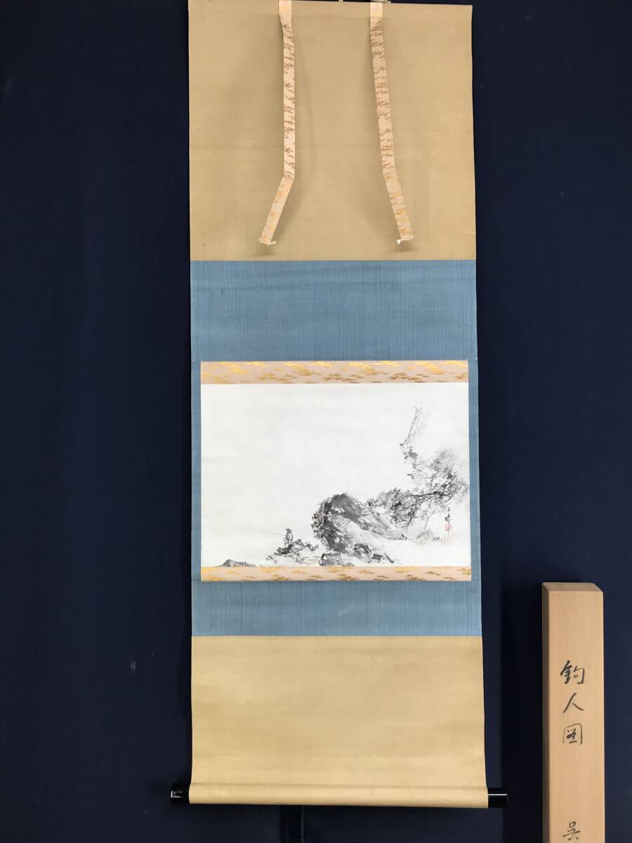 真作/三宅呉暁/釣人図/太公望図/横物/掛軸☆宝船☆AE-498