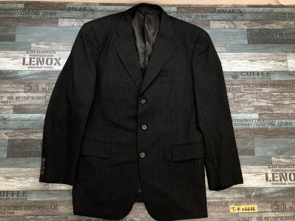 NEWYORKER ニューヨーカー メンズ ウール ストライプ テーラードジャケット 背抜き 春秋 3つボタン A7 チャコールグレー です。