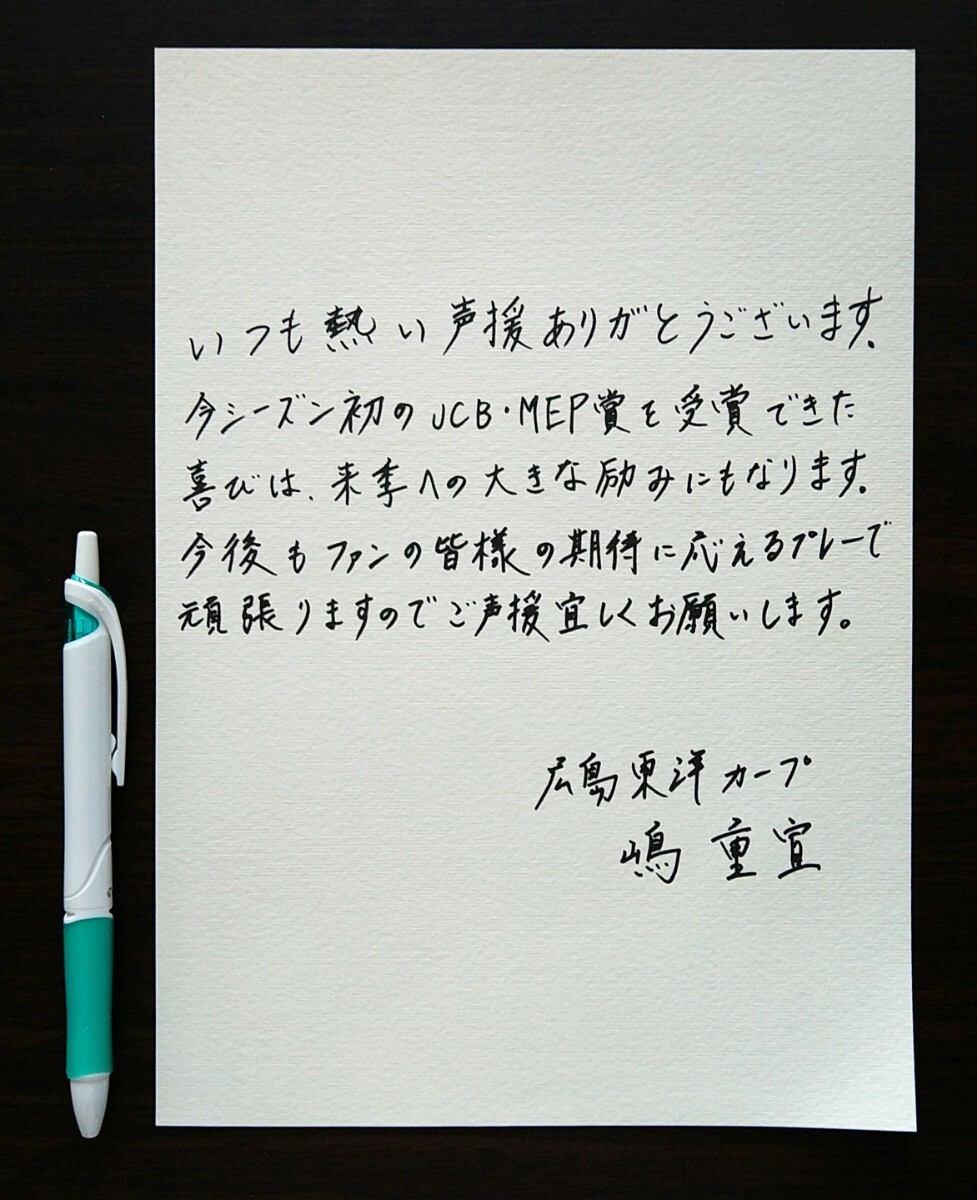 ■写真に書かれたサインは嶋重宣選手の本人直筆サインで、印刷ではありません。付属のメッセージカードは印刷です。