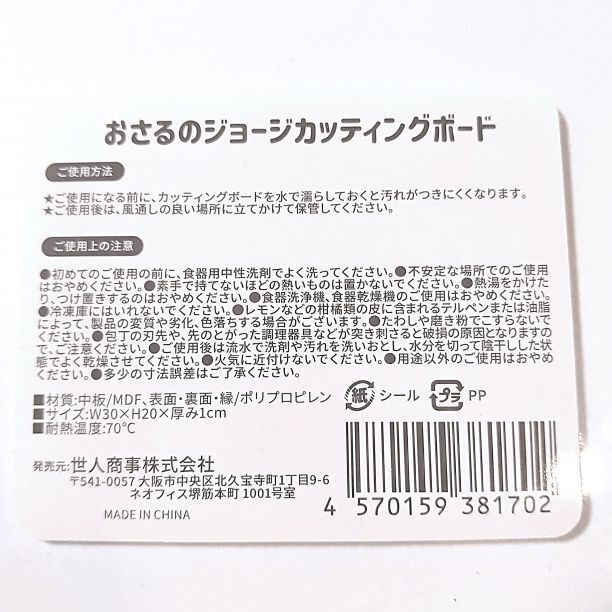 【新品未開封】おさるのジョージ カッティングボード まな板 水色 クッキング柄 かわいい 新品となります。