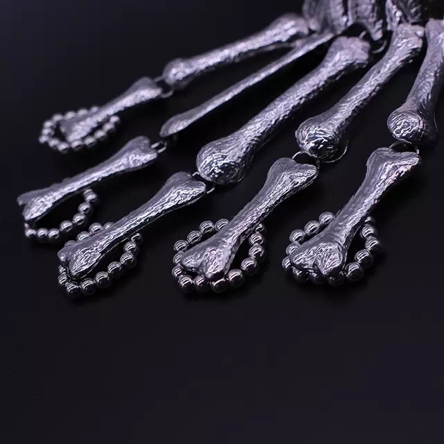 未来的な金属シルバーカラーのホネホネが手の甲で光り注目度アップです