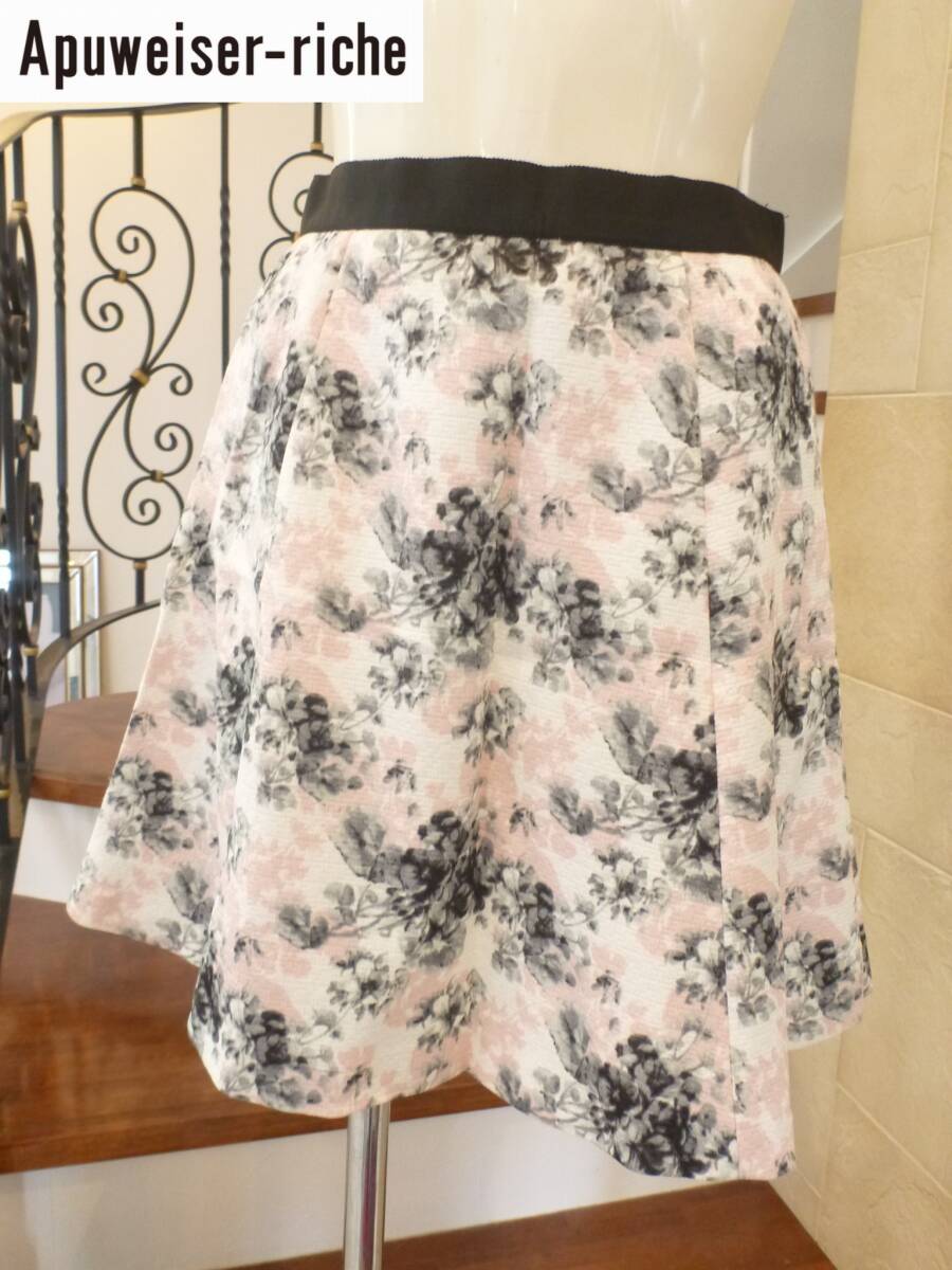 超美品 Apuweiser-riche(アプワイザー・リッシェ)★黒×ピンク×花柄 スカート 2 M相当