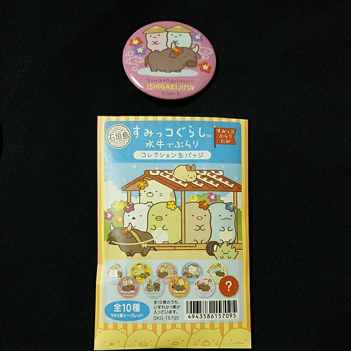 ご当地すみっコぐらし 石垣島限定 水牛でぶらり たぴおか コレクション缶バッジ です。