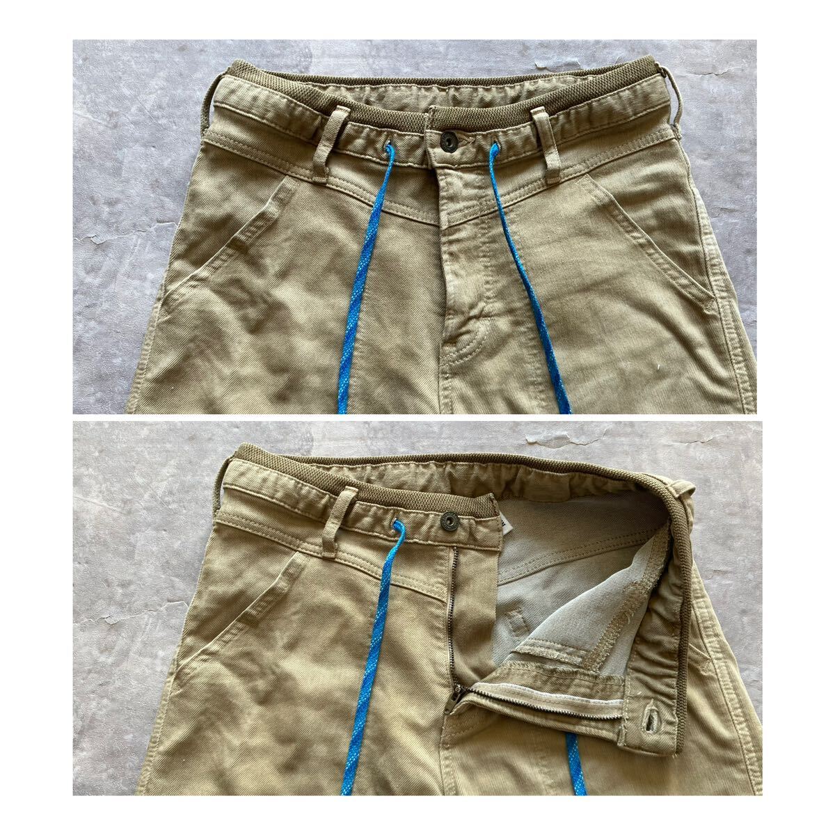 ベイカーパンツのデザインで、フロント、バック共に大きめのポケットを採用したワーク系の雰囲気が漂うモデル。