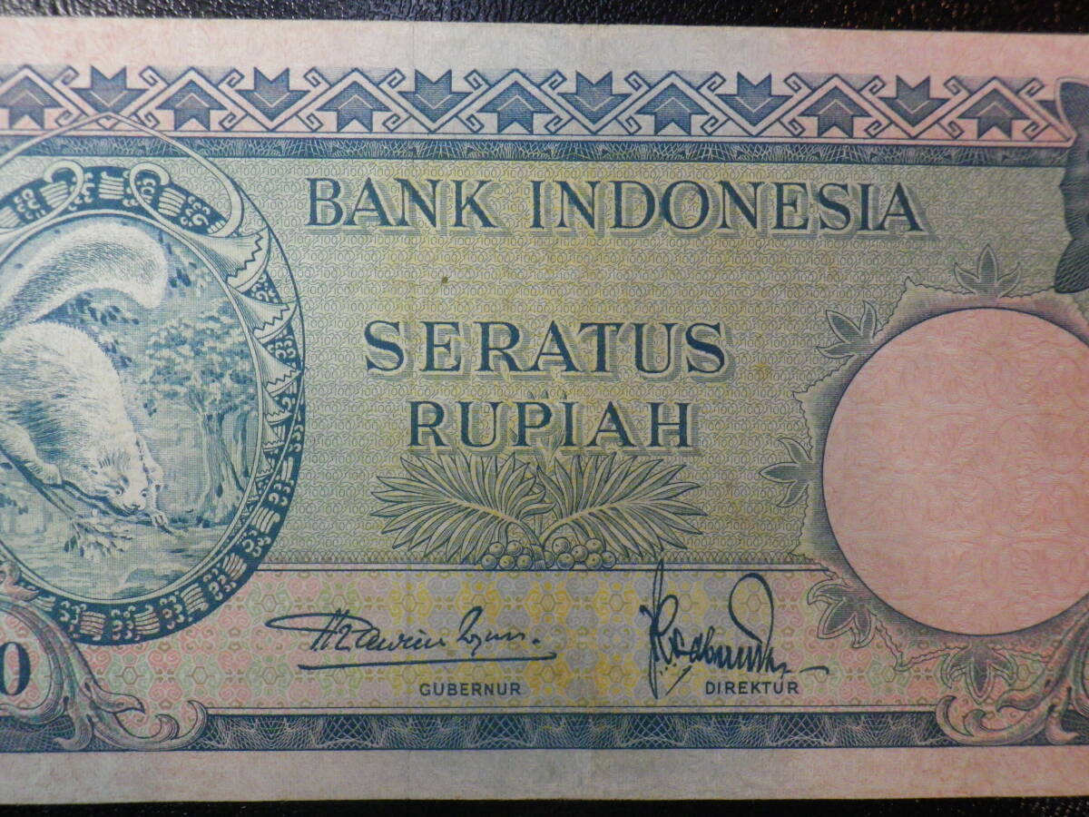 インドネシア アニマルシリーズ 1957年 リス 100Rupiah 極美品+