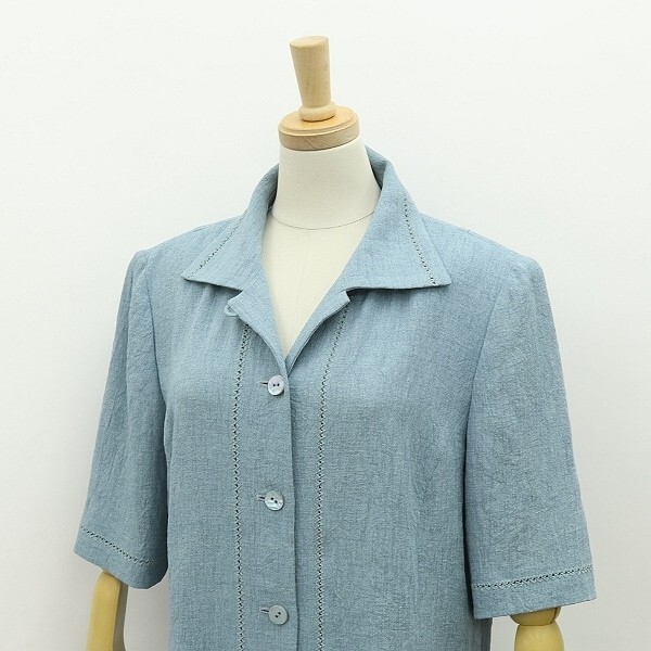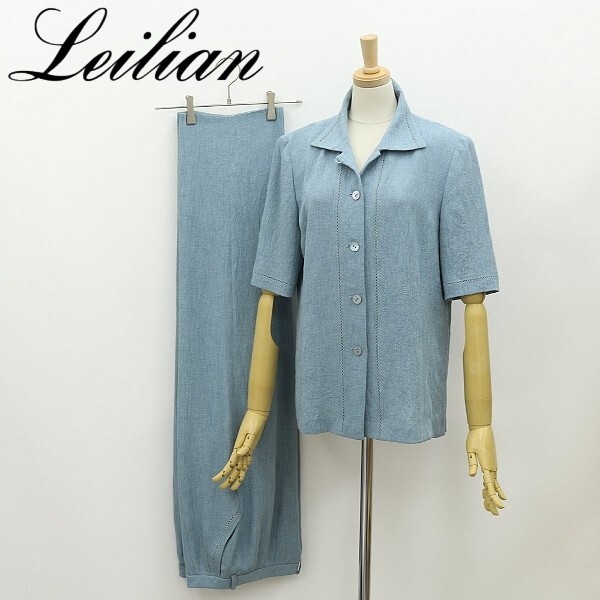 美品◆Leilian レリアン 刺繍 半袖 ショートスリーブ ブラウス シャツ&パンツ セットアップ 水色 9 | |