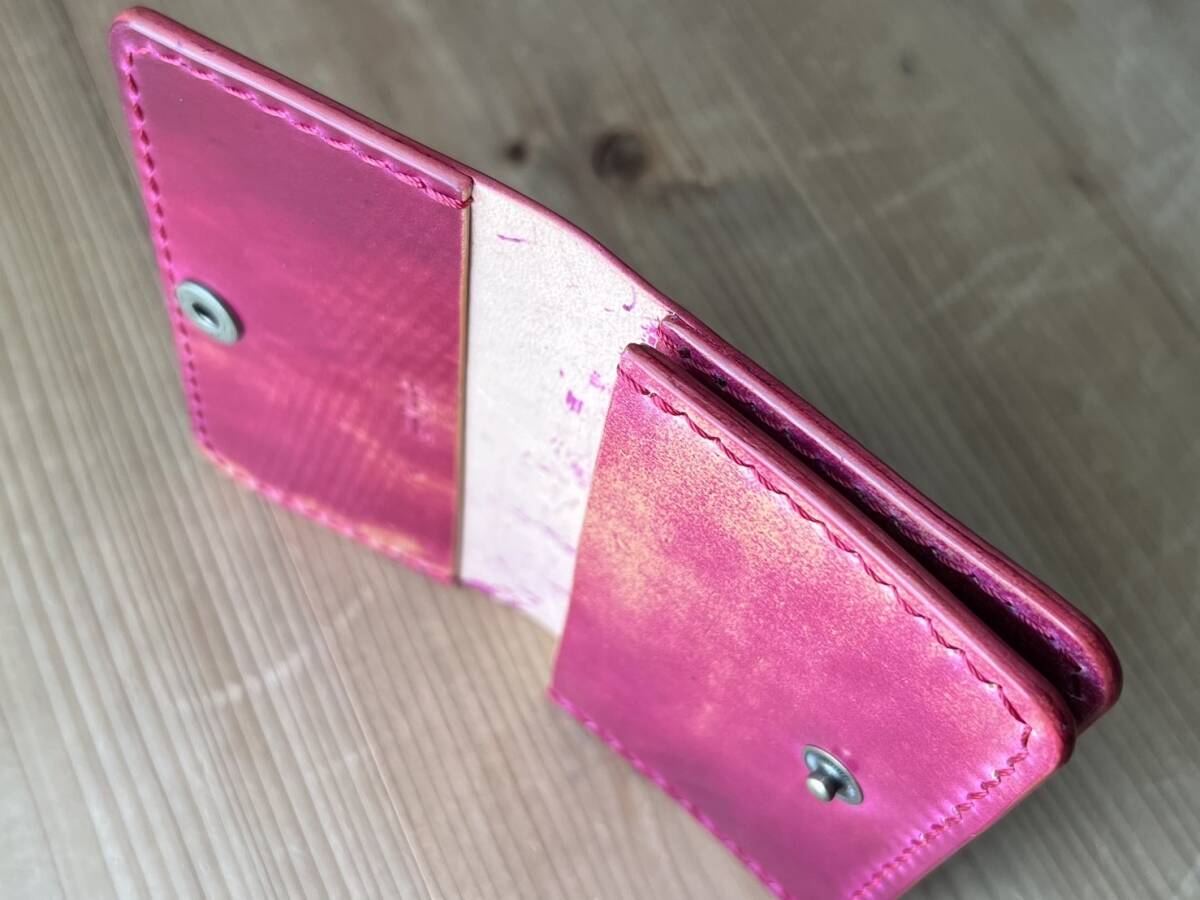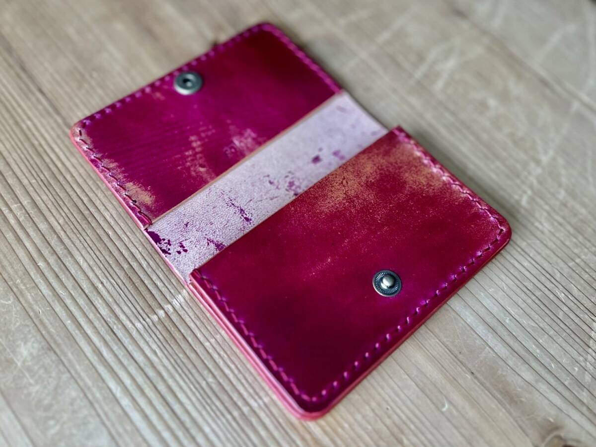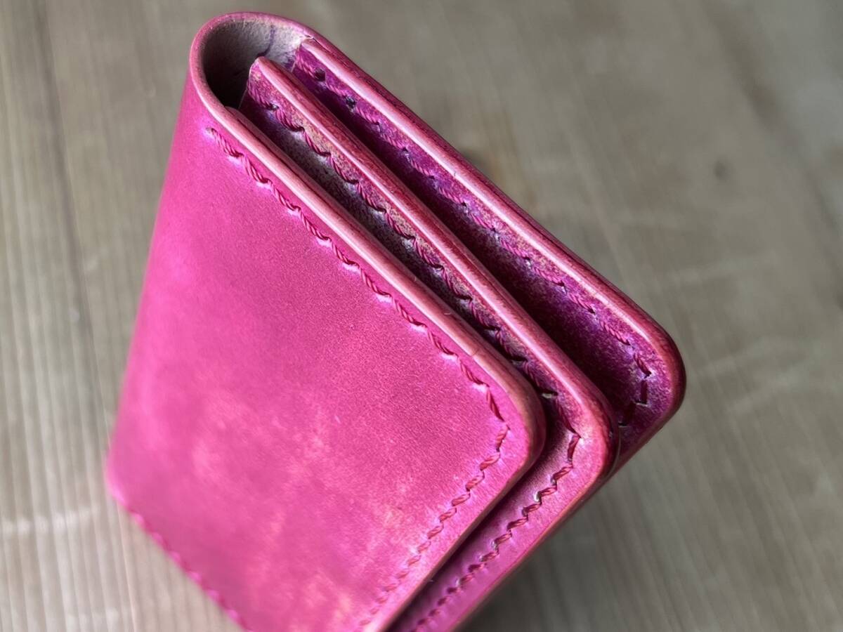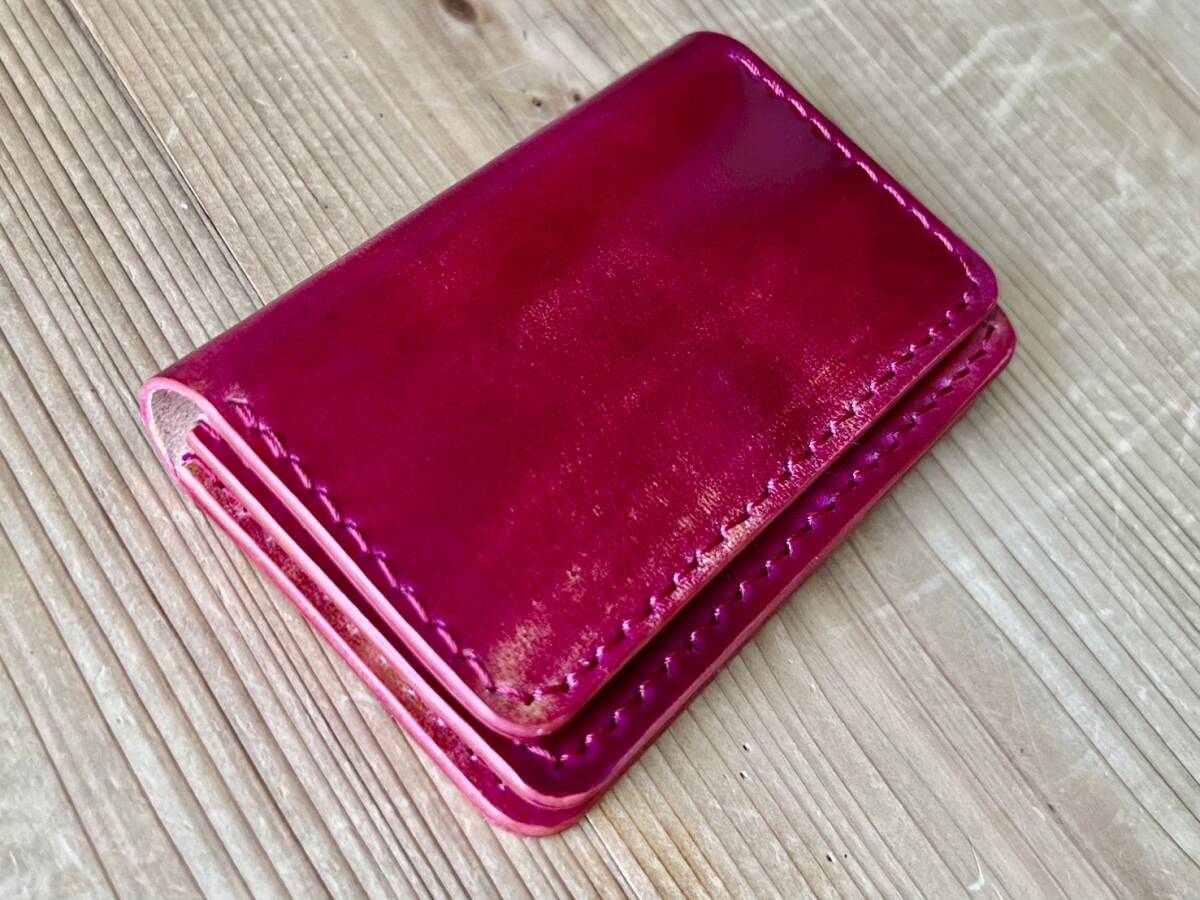 みなさま、はじめまして。ハンドメイド作家のソロリと申します。 ヤフオクにて自分で製作した革製品を出品させて頂いております。 今年で4年目(製作歴9年)に突入し、コツコツと実績を積み上げてきた証は、これまでの評価欄に記載の通りですので、ネット購入の不安さも少しは無くなるのではないかと思います。 実際に購入された方が大変喜んで下さると私まで嬉しくなりますし、これからも作り続けられるように日々励んでいます。 出品しているお財布の色違いは【カラーオーダー】としてお受けしています。やり取りはメール(solori_leather@yahoo.co.jp)になりますが、お問い合わせくださいませ。 レーデルオガワ製コードバンは色も豊富なので、参考に出来るように【solori_leatherでインスタグラム】に製作例を上げています。 まだまだやる事がいっぱいありますが、一歩一歩進めて行きますので、宜しくお願い致します。 とにかく手作り! 全てが手仕事、大きな革を型紙通りに裁断して、穴あけから手縫い、コバ磨きまで行っております。 そのため、ひとつひとつに個性が生まれ、なんとも味のある作品になります。 逆に、工業製品のようなメーカーの均一さは無いので、ご理解頂ける方のみご落札下さいませ。 とにかく素材第一! いくら技術があっても、革質までは変えられないと思っています。 そこで、使う革を日本屈指のタンナーである栃木レザーや数少ないコードバン製作会社レーデルオガワなどに絞り、質の良い作品になるようにと考えています。 とにかく使う! 革の良いところは、使えば使うほどに革が馴染んできて、味のある経年変化を楽しめることにあります。 なので、キズや染みなど気にせずに使い倒しましょう。 出品物『2連カードケース』 お財布サイズ:(㎝)横幅11.2:縦幅7.5:マチ幅2.5 アウター素材:シェルコードバン(ロカド社製、厚さ約1.7mm) インナー素材:シェルコードバン(ロカド社製、厚さ約1.7mm) 仕様:カードケース(名刺) 色:マーブルピンク(メーカーカラー呼称) 糸:ビニモMBTチェリーレッド(太さ5番) ピッチ:5mm |