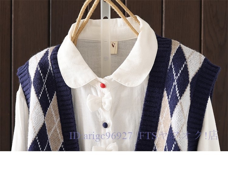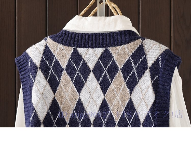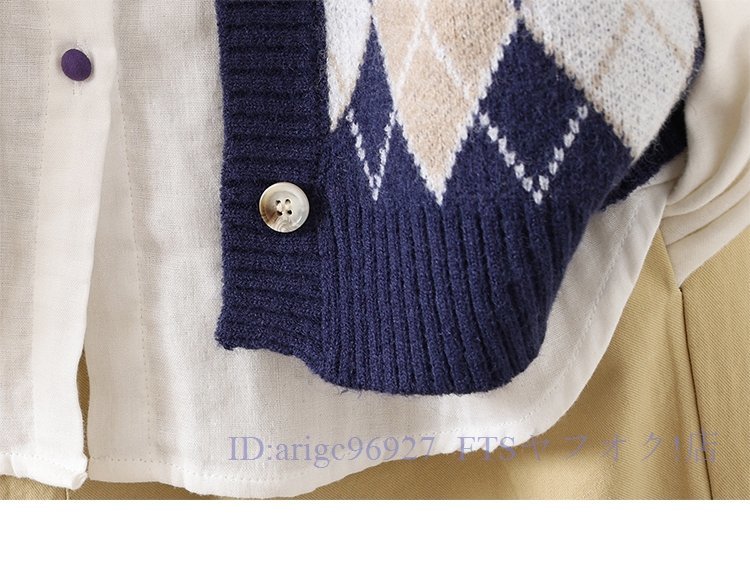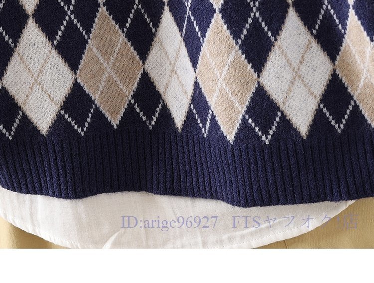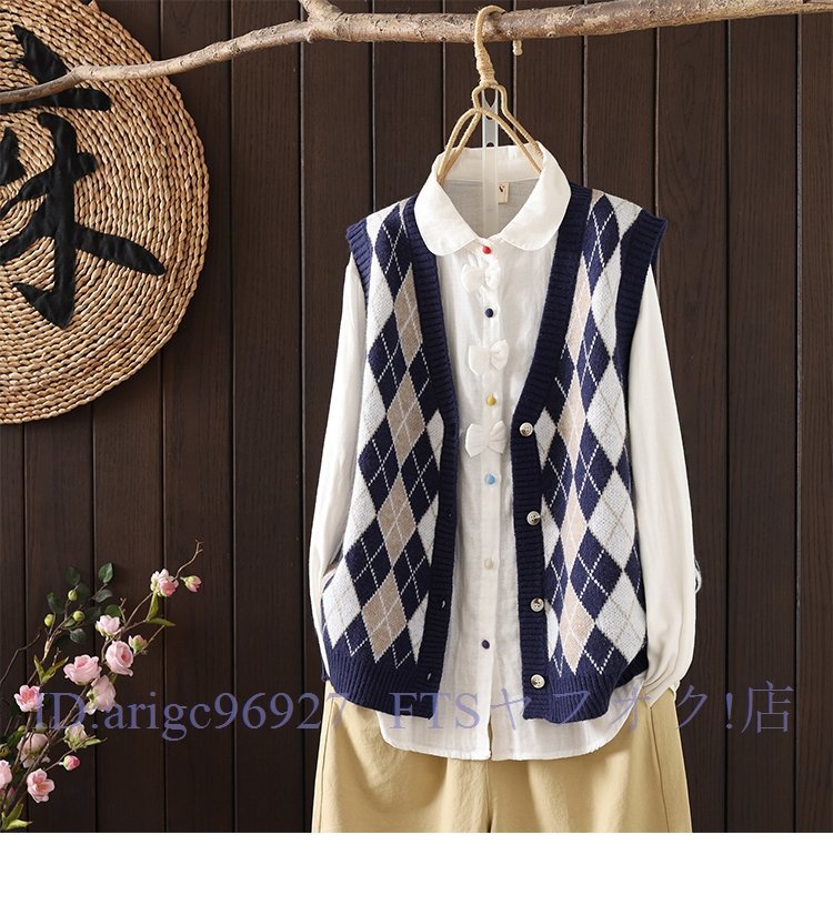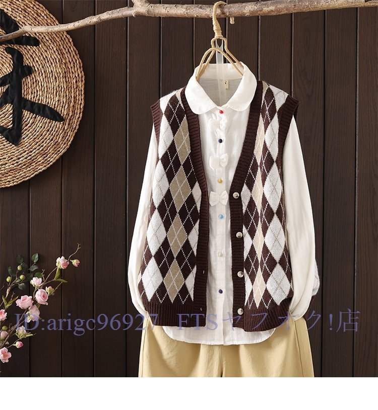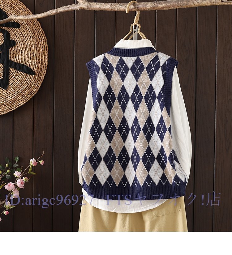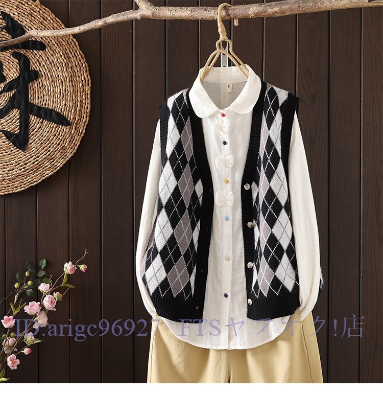 A6508☆新品秋冬 上質 おしゃれ ウール混 ニット Vネック チェック柄 袖なし ニットベスト カーディガン F ブラック
