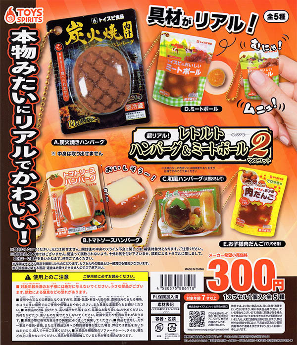 トイススピリッツから発売の超リアル レトルトハンバーグ&ミートボール2、全5種のうち『E.お子様肉団子(てりやき味)』です。300円ガチャにしては驚きのリアルな造形です。内袋未開封、リスト付きです。送料ですが普通定形外郵便(補償無し)で宜しければ140円です。