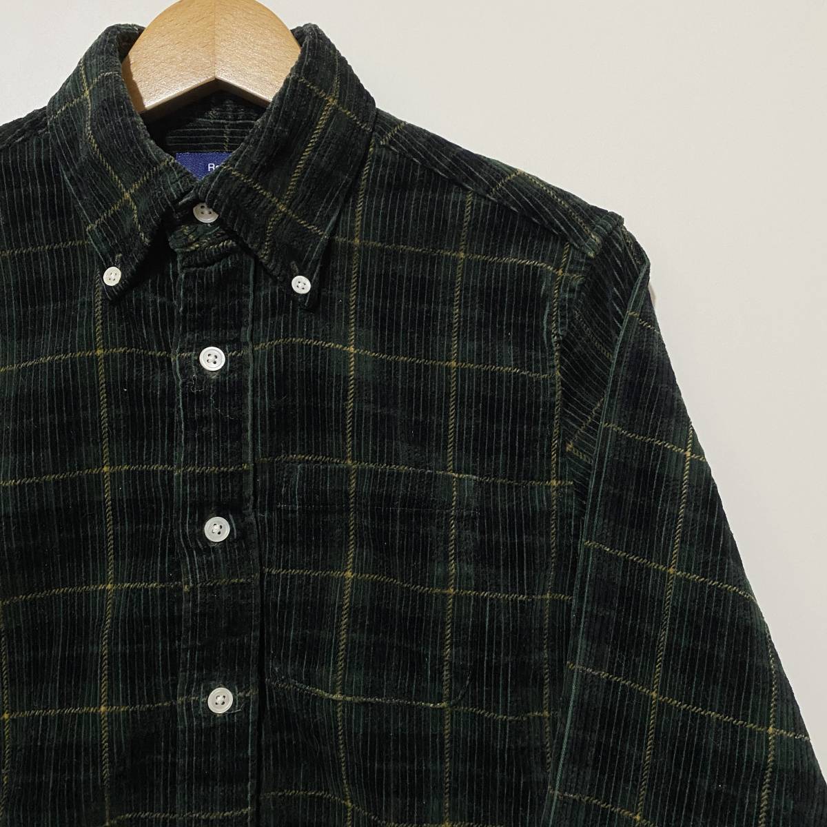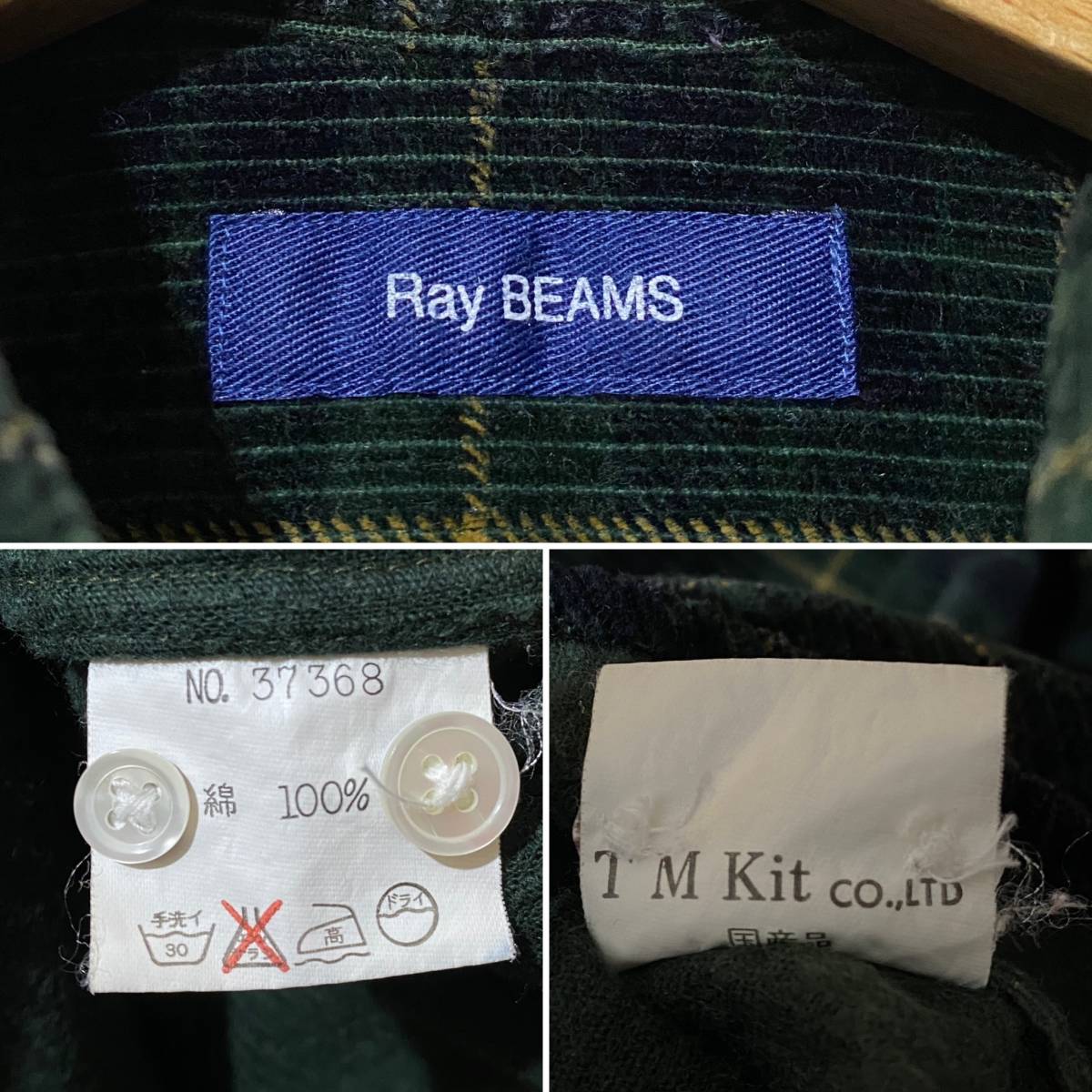 ★ Ray BEAMS レディース 長袖 コーデュロイシャツ チェック ネルシャツ 緑 グリーン系 ボタンダウンシャツ BDシャツ 国産品 小さいサイズ
