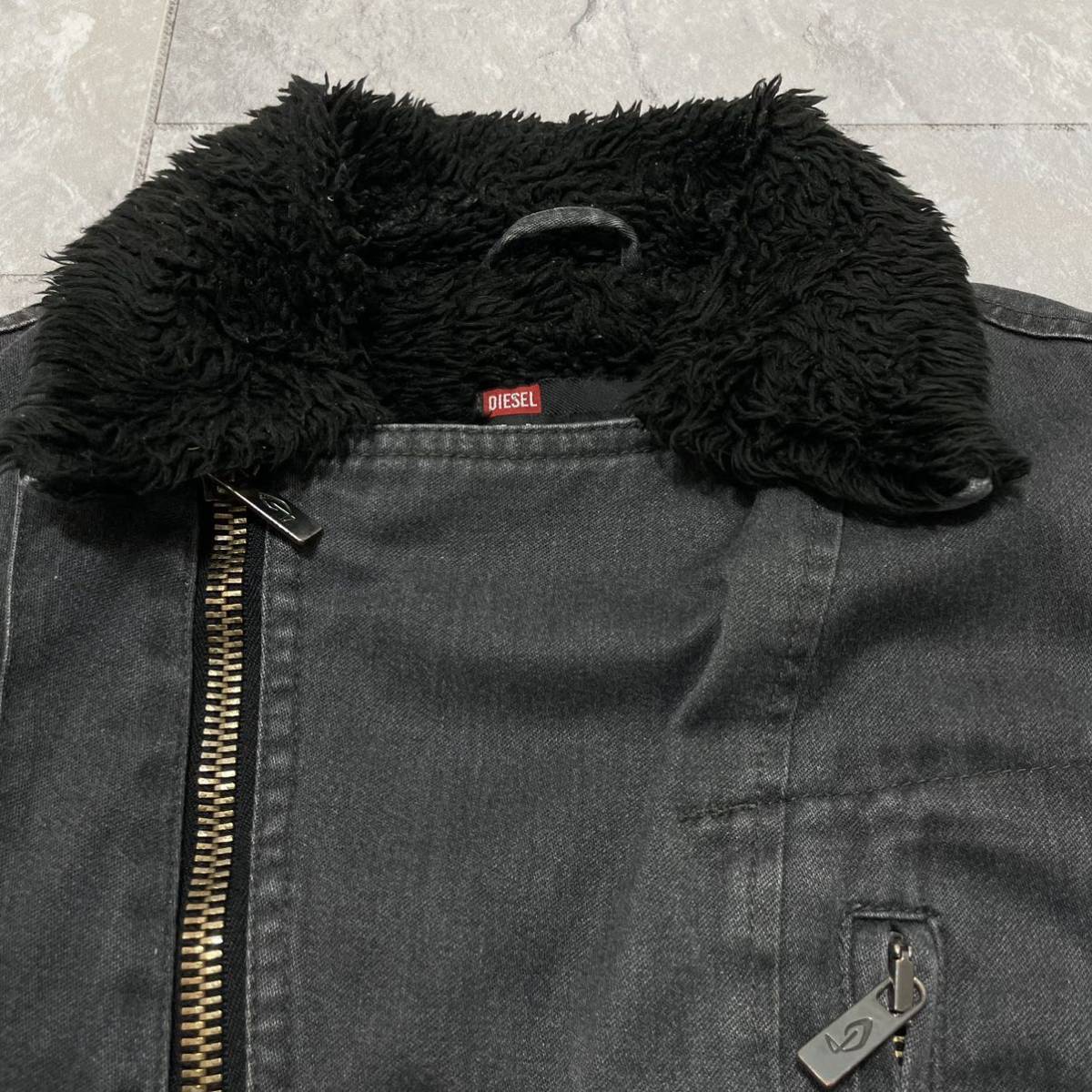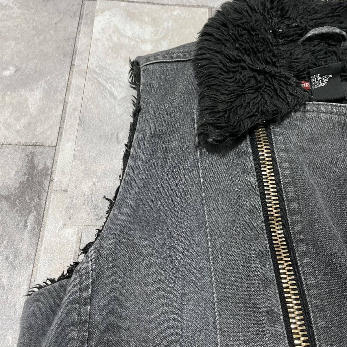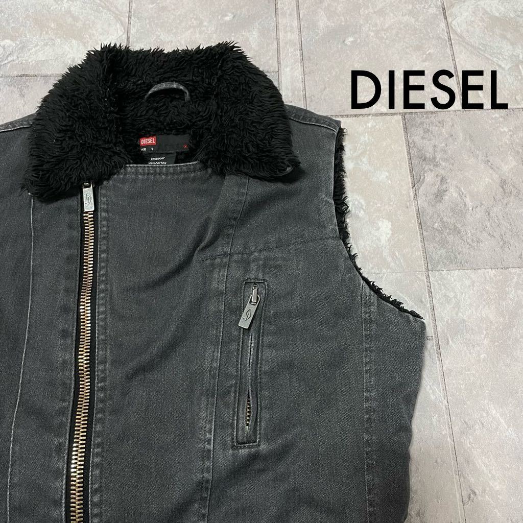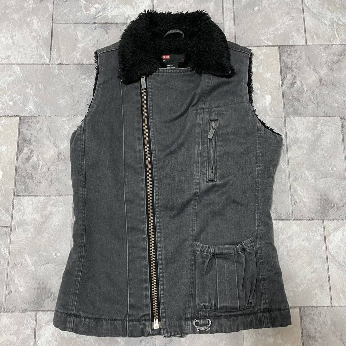 DIESEL ディーゼル デニム ベスト ジャケット ジップアップ 裏地ボア ライダース ブラックデニム レディース サイズS 玉SS1372