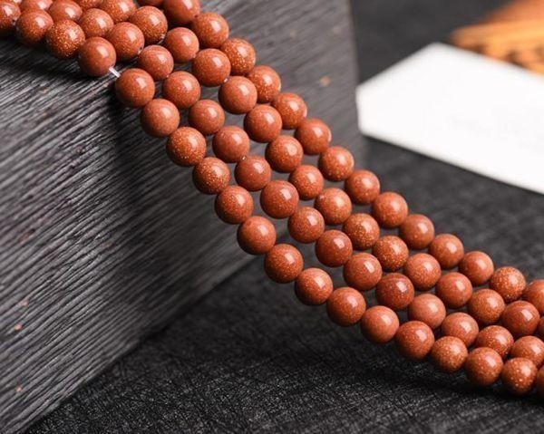 [EasternStar] 海外発送 ゴールドストーン 茶金石 Goldstone 玉サイズ16mm 1連売り 長さ約40cm