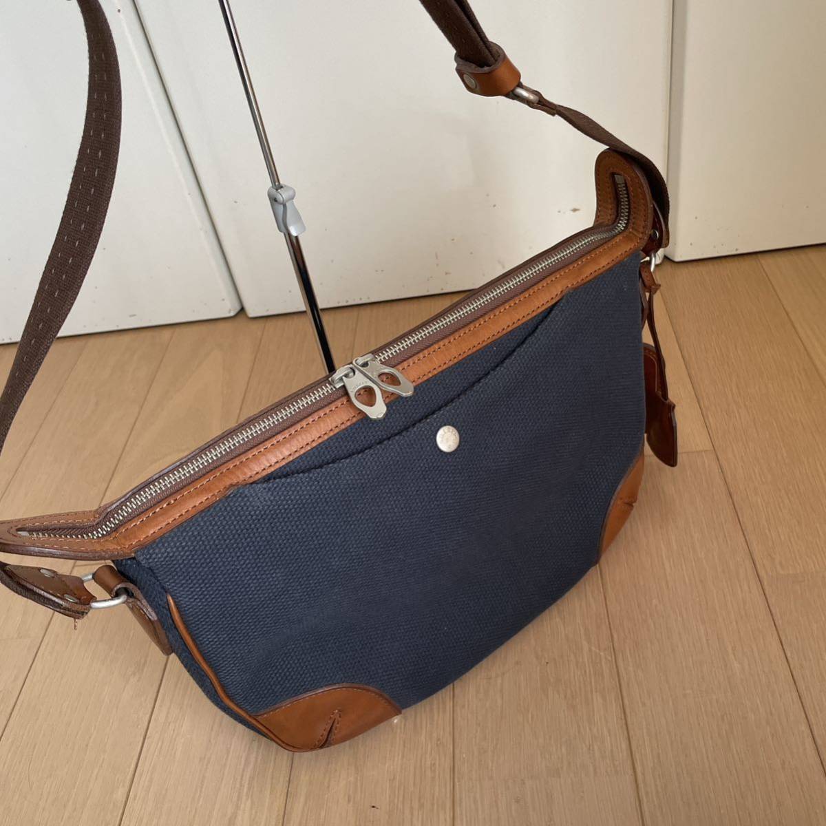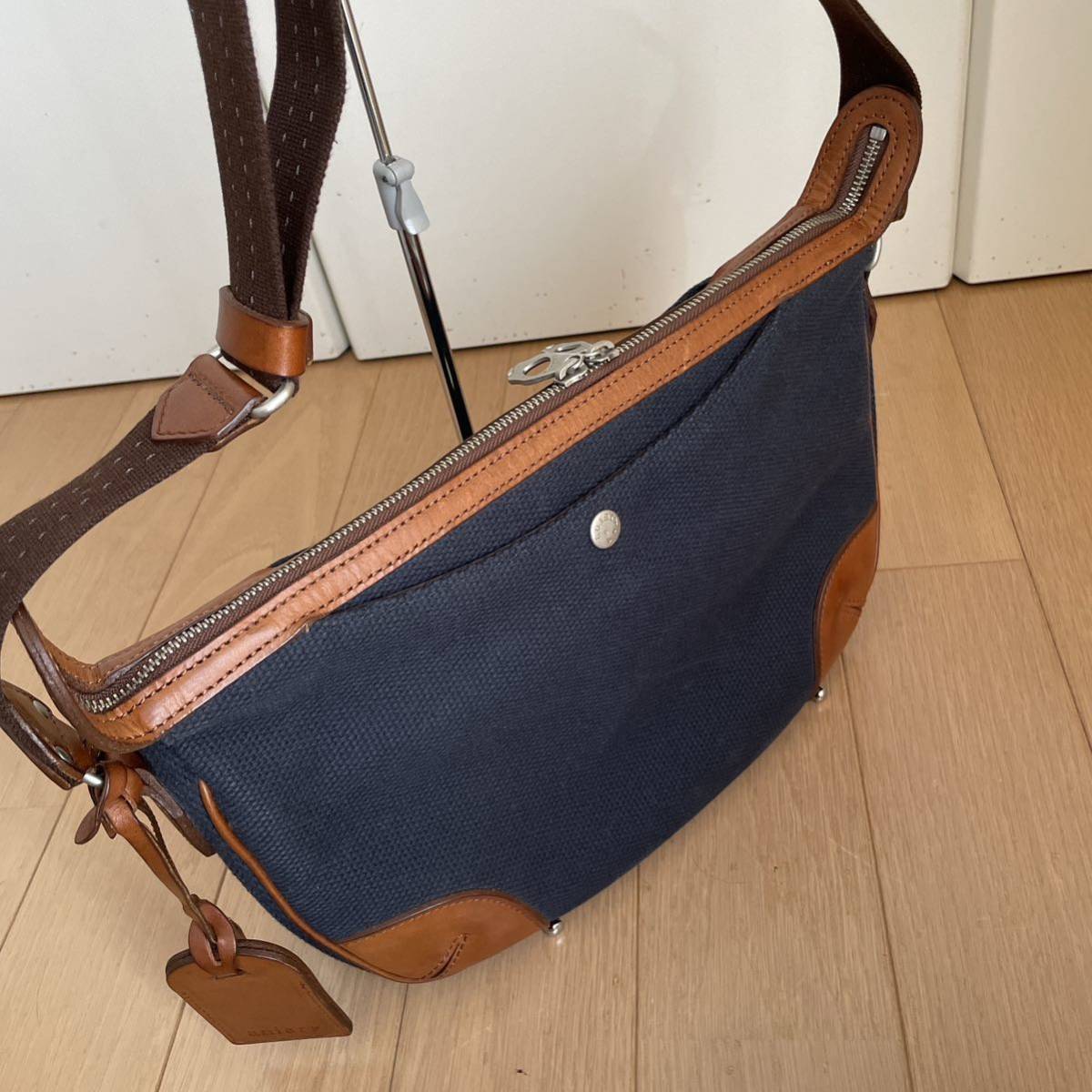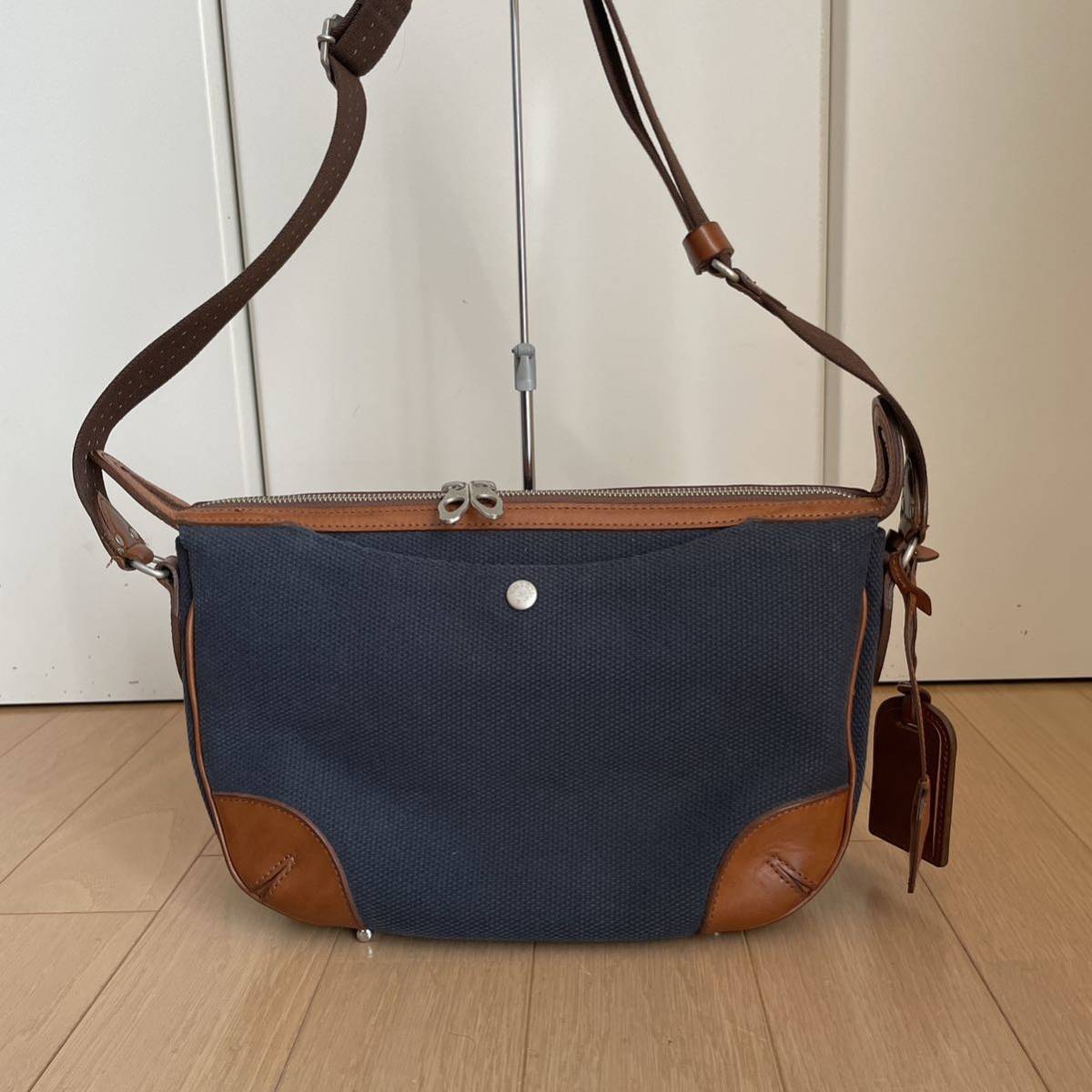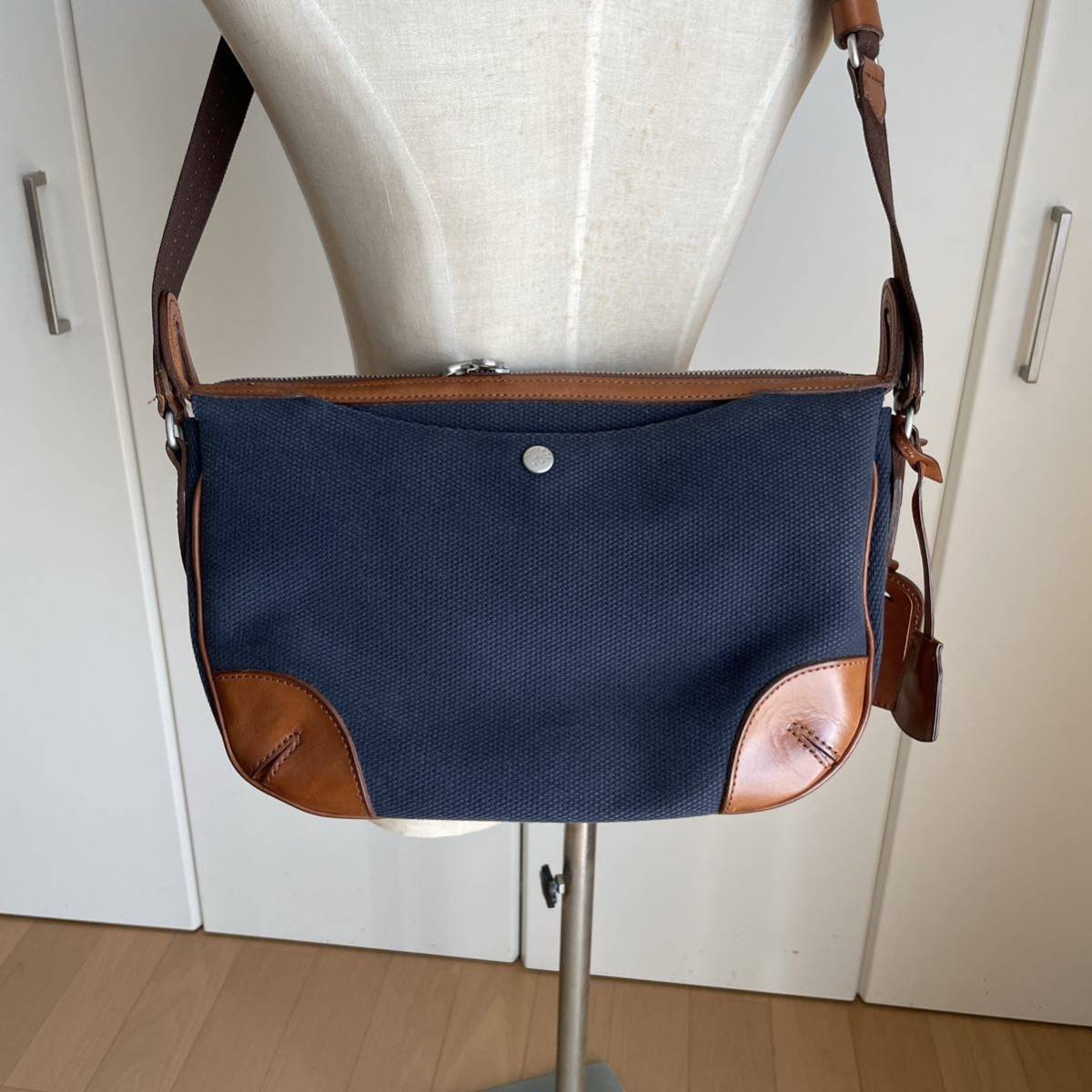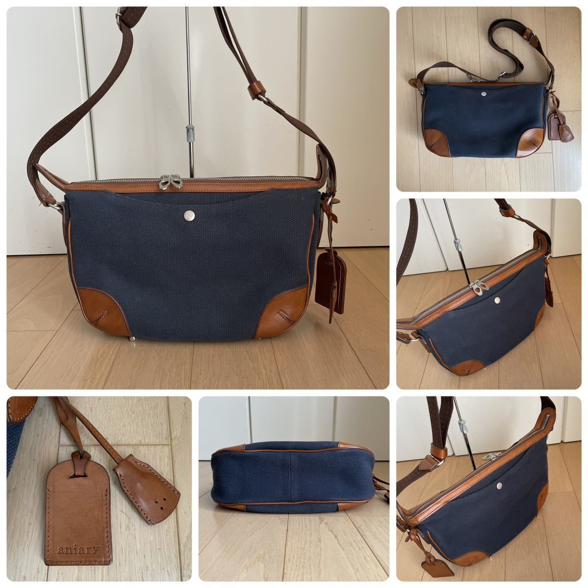 アニアリ黎明期のモデルで、現行モデルにはない素材使いで、本体はキャンバス×パイピングやハンドル等のパーツ類にレザーを採用しています。