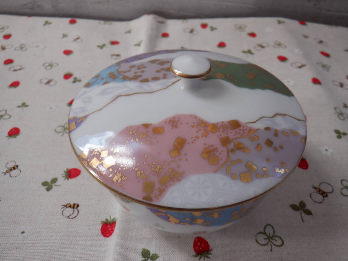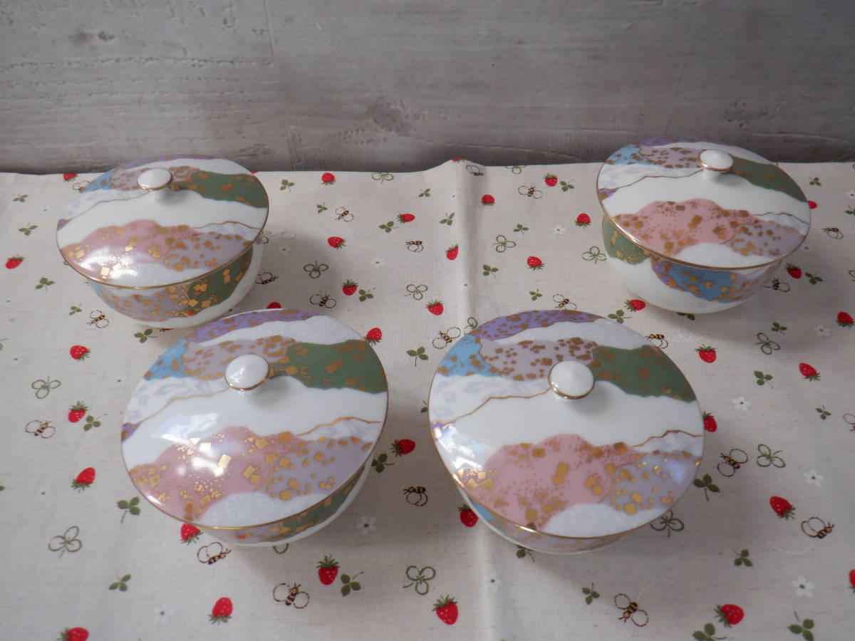 『陶彩 ちぎり紙シリーズ★金彩 ちぎり絵の和柄が華やかな蓋付き湯飲み揃~4客まとめて』~箱付き 1客分破損の為、欠品! 長期保管品になります。湯飲みのサイズですが、口径8.5cm、高さは5.5cm(蓋をしない状態の採寸です)、蓋付きの状態のサイズですが、直径9.7cm、高さ7.3cmあります。採寸の方ですが、多少の誤差はお許し下さい。1客分ですが落として割ってしまいましたので、1客分欠品しており、4客分になりますので、ご理解いただける方のみ入札をお願いいたします。長期自宅保管品につき現状渡しとなります。ノークレームノーリターンでお願いいたします。神経質な方は、入札をご遠慮下さい。新規の方・悪い評価が多い方の入札は、こちらの判断で取り消すことがあります。