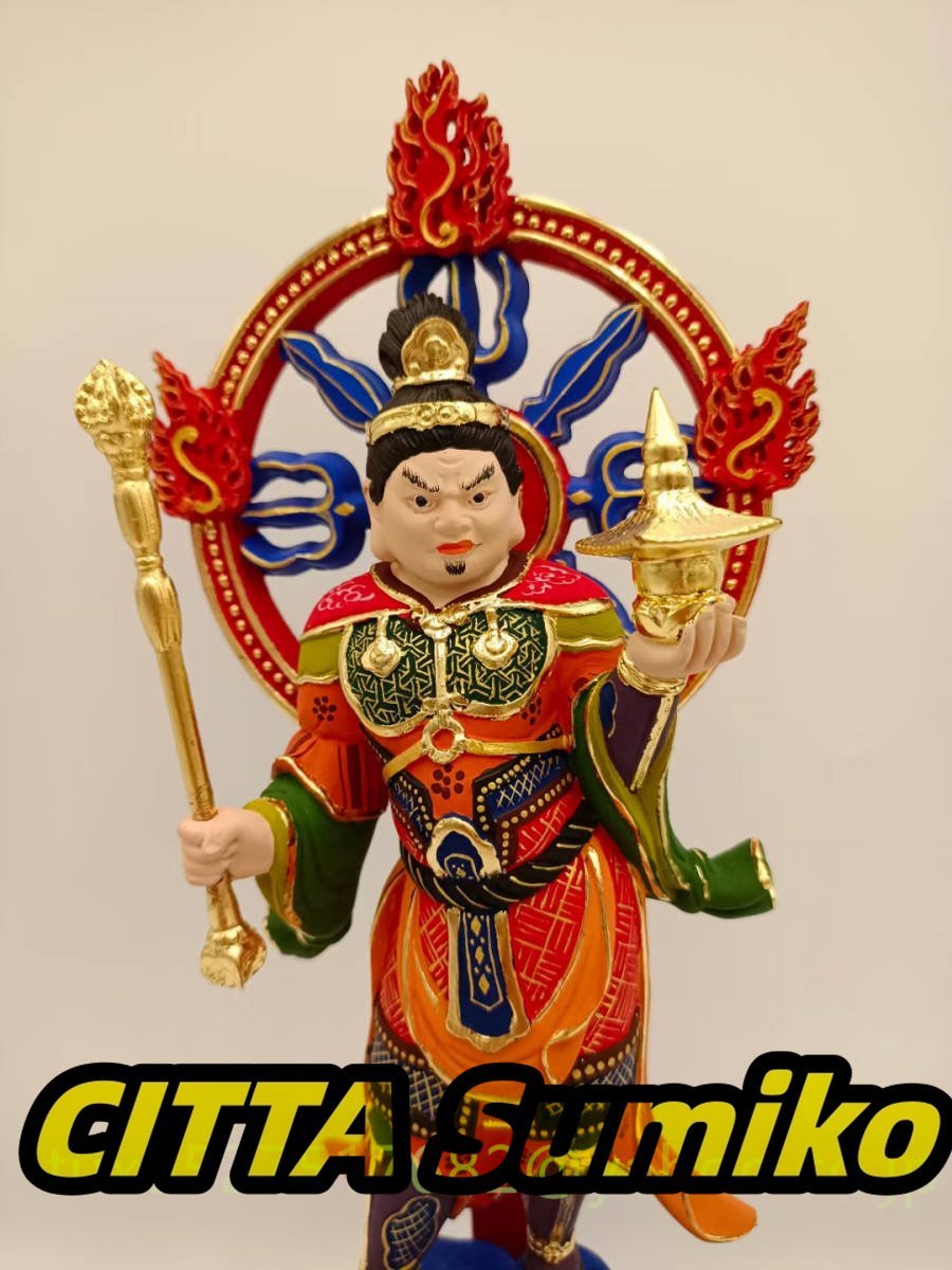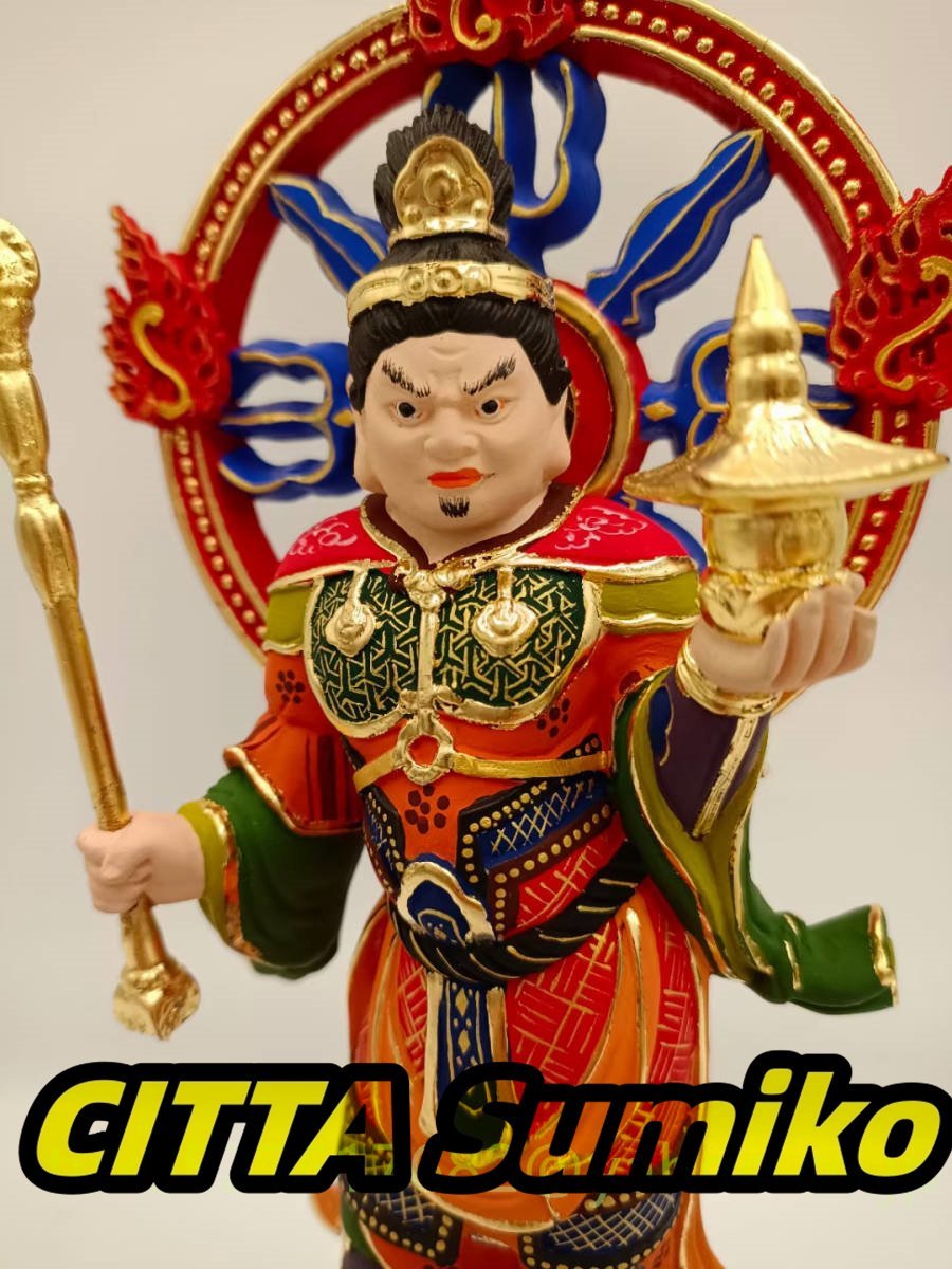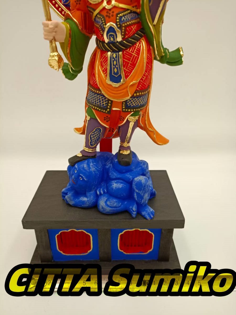 毘沙門天 極上品 木彫仏像 仏教工芸品 招財開運 仏師彫り 仏教美術 彩繪 本金 切金 天然木檜材