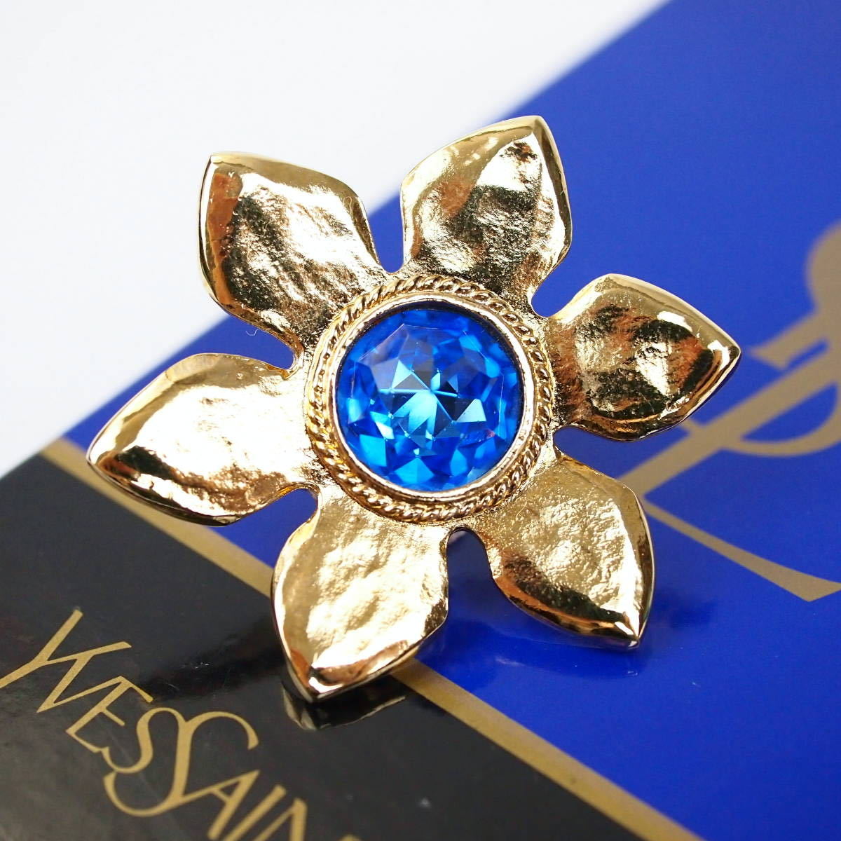 【A890】美品 希少 YSL イヴサンローラン コレクション フラワーモチーフ ピンブローチ(箱付)