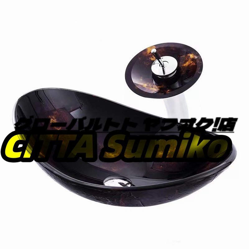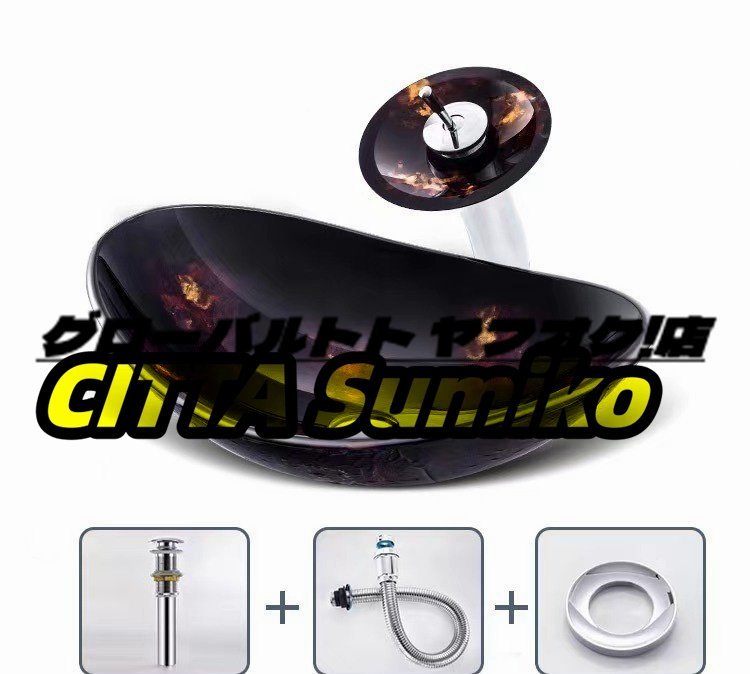 新品推薦★ 高品質 洗面ボウル ガラス 手洗い鉢 手洗い器 洗面器 洗面台 おしゃれ (排水ホース付き)