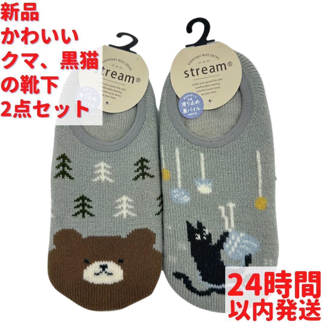 かわいい クマと黒猫の靴下 2足×23~25cmセットです。