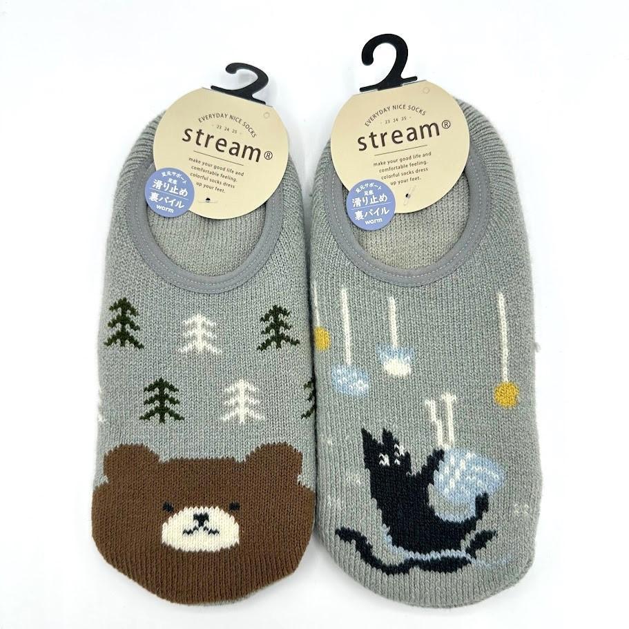 かわいい クマと黒猫の絵が特徴のくるぶし靴下です。