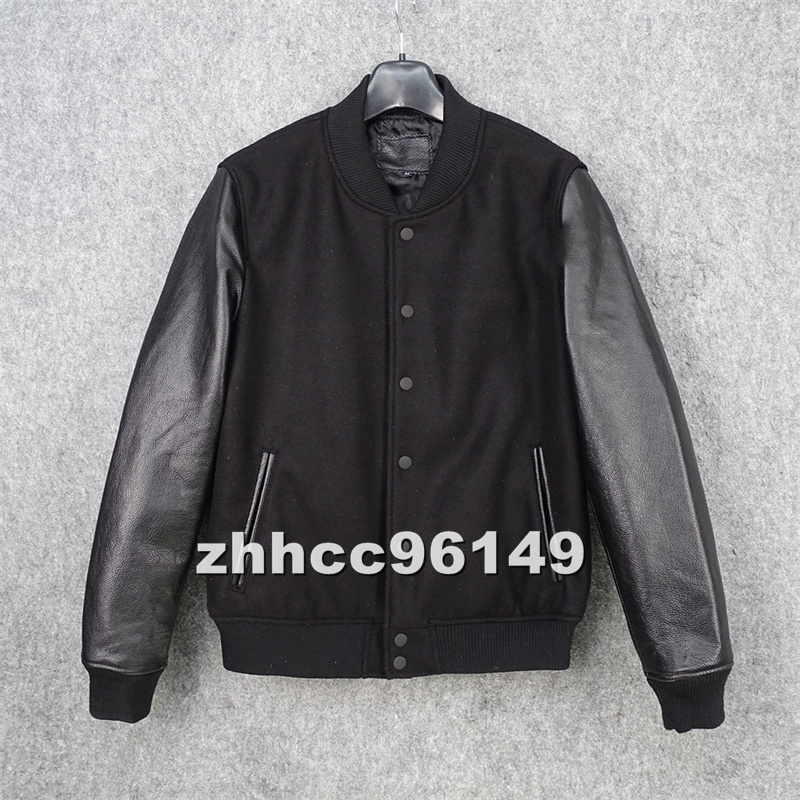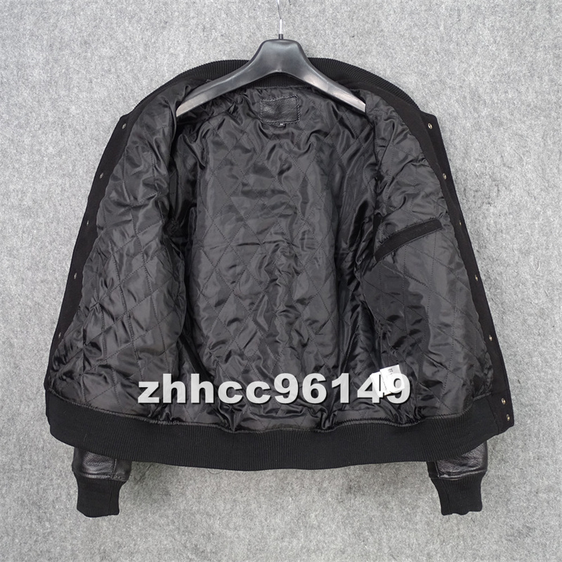 ■新品■スタジャン 最上級 牛革袖・ウール切替・中綿 レザージャケット メンズ 革ジャン ライダース スタジアムジャンパー M~5XL