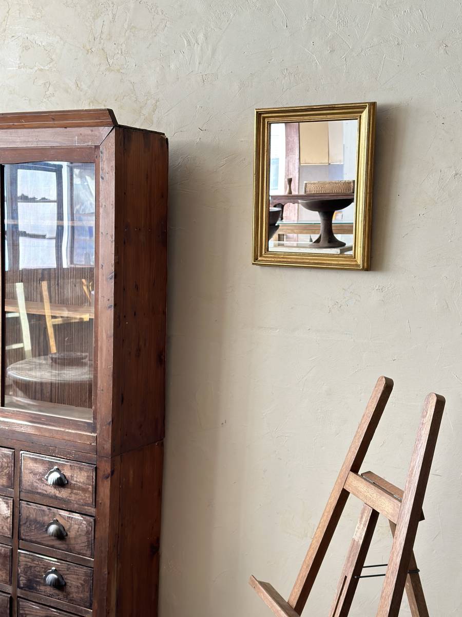 ペイントの禿げ具合など、シャビーな雰囲気が可愛らしく、存在感のある木製フレームの鏡です◎