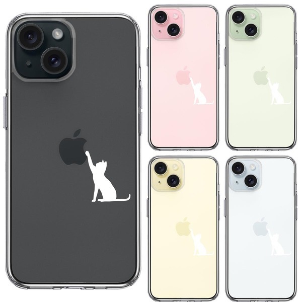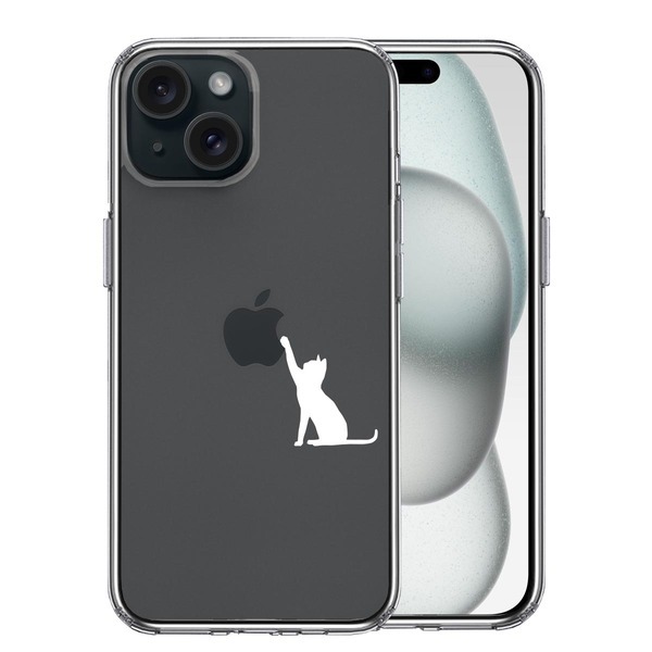 iPhone15Plus ケース クリア 猫 CAT ねこ にゃんこ 玉遊び 白 スマホケース 側面ソフト 背面ハード ハイブリッド