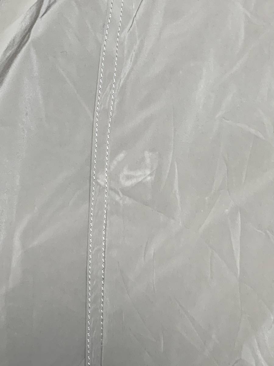 後ろのスリット部のボタン、表の生地に跡出ています。