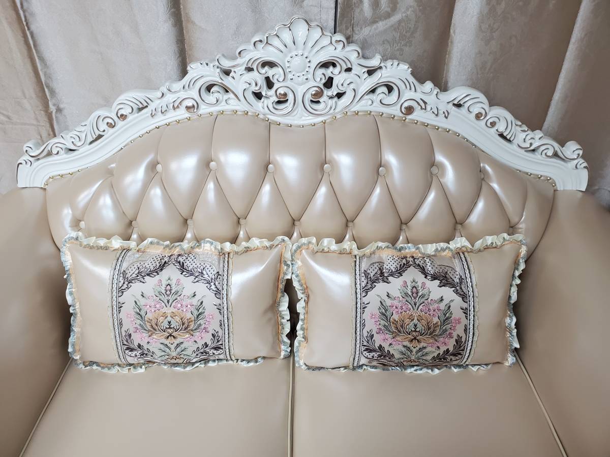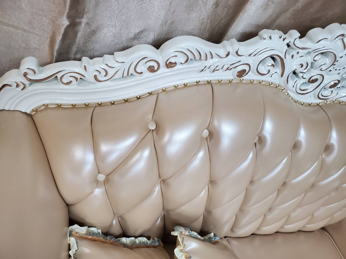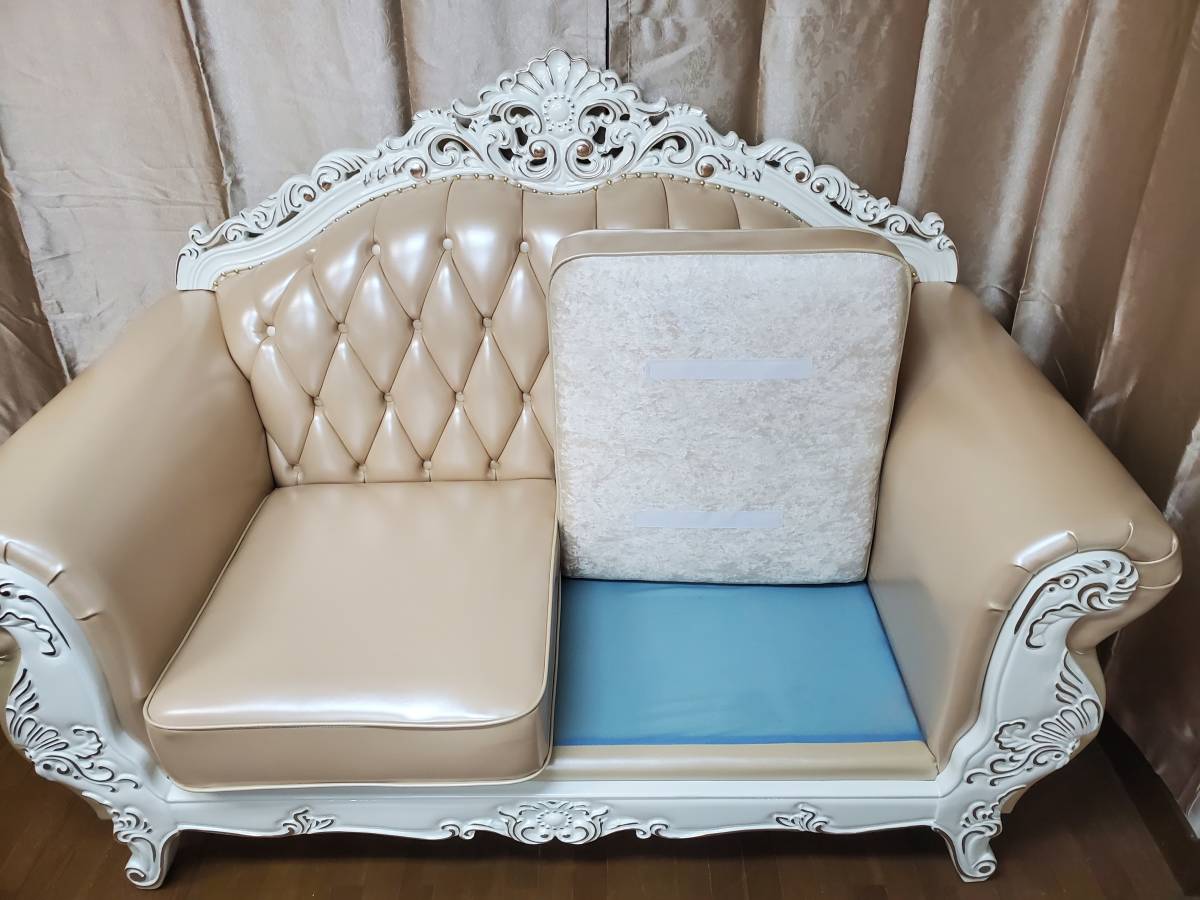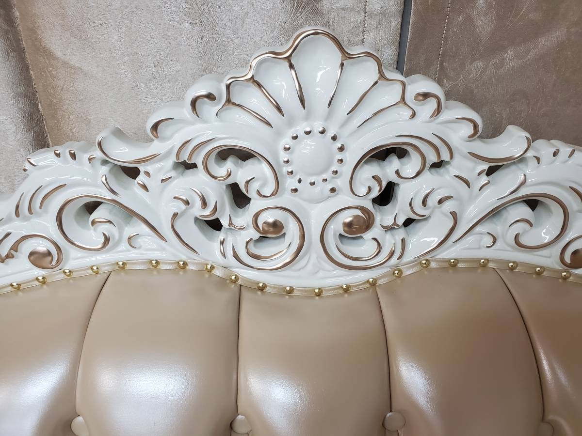 サイズ本体 幅180cm×高さ125cm×奥行き90cm*若干の誤差はご了承ください。素材 天然木、超繊維革、高密度ウレタンシャンパンゴールド色ソファーにあるクッションは付属品です超繊維革防水 防汚、耐久性が本革よりも高く、丈夫であること、。繊維構造が複雑に立体的であるため、とてもソフトであること。なによりも軽量であること。等々合成皮革の難点を解消し、本革の良さに近い素材となっています。高密度ウレタン一般的なソファには20〜30kg/程度の密度のウレタンが使用されることが多く、 それより密度が高いものは「高密度ウレタン」と呼ばれます。職人によって精細に施された優美な彫刻。 その一つ一つが手彫り仕上げで、味わい深い魅力のある逸品です。脚部はしなやかな猫脚のように、美しい曲線を描いたフォルムです。張地は超繊維革張りになっており透かし彫りに仕上がっております。 日々のお手入れがしやすい商品です。木部には繊細な彫刻が施されており、気品溢れる空間を演出します。落札後必ず、取引ナビにてお電話番号をお伝えください。スムーズに発送手続きを行うために、宜しくお願いいたします。複数在庫あり!!大量の注文も受けます。決済方法●簡単決済●銀行振込*消費税頂きません。領収書発行可能です。送料