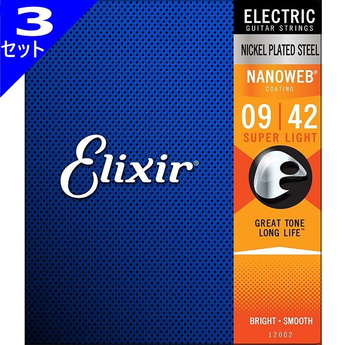 3セット Elixir Nanoweb #12002 Super Light 009-042 エリクサー コーティング弦 エレキギター弦