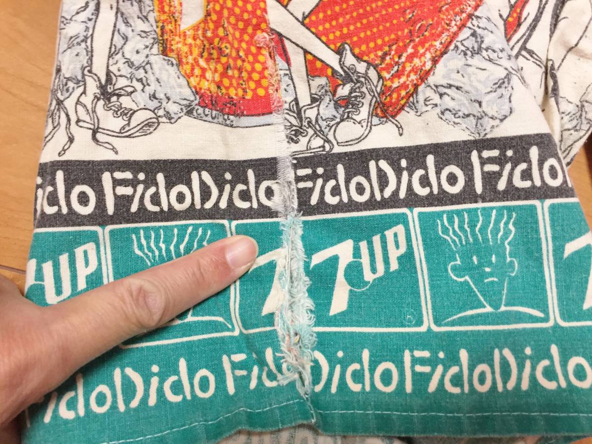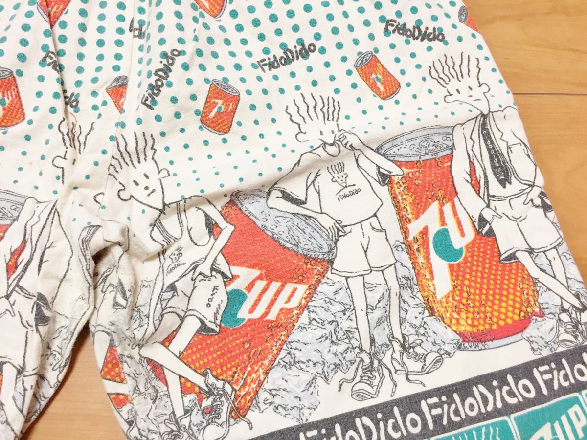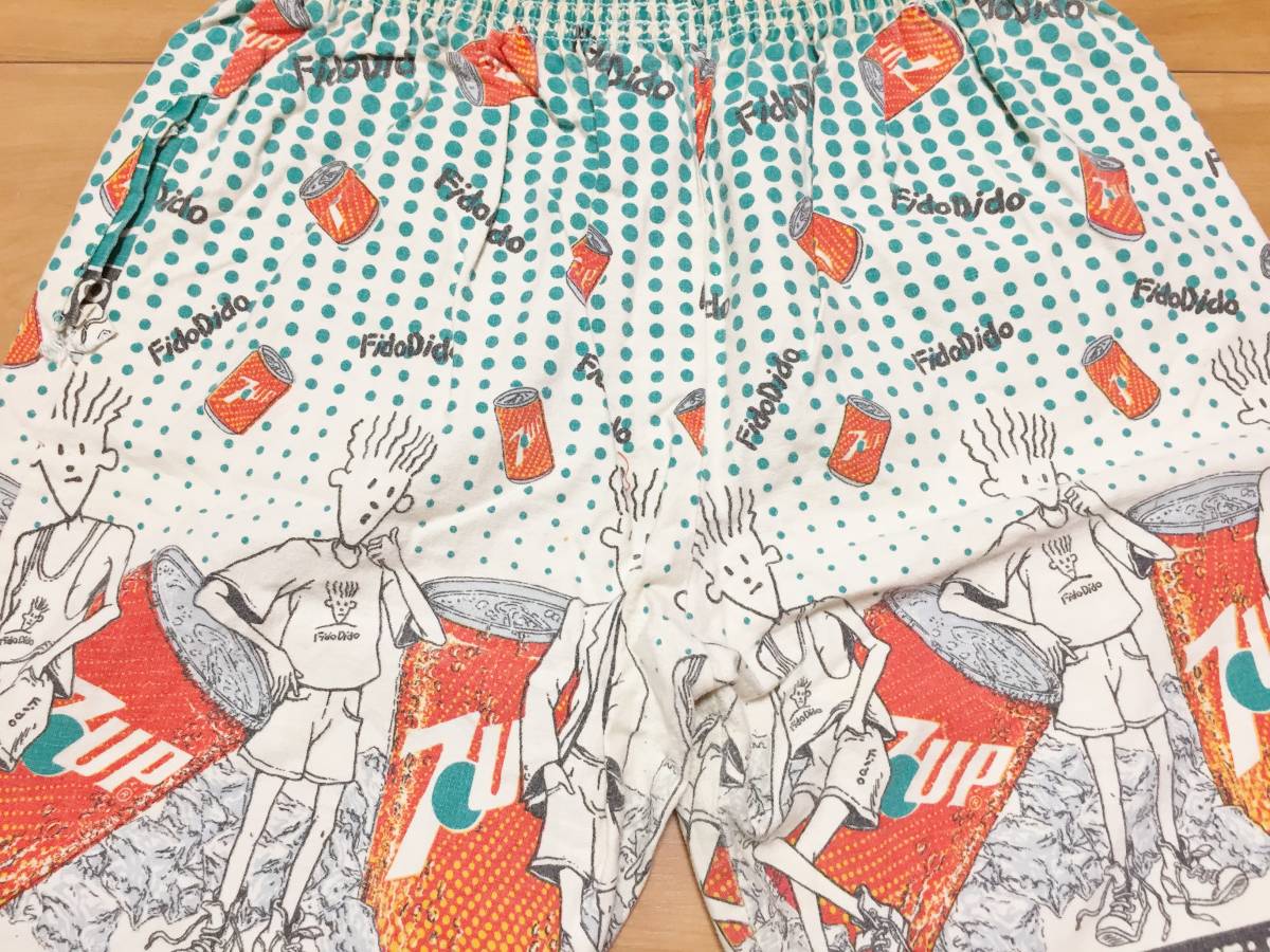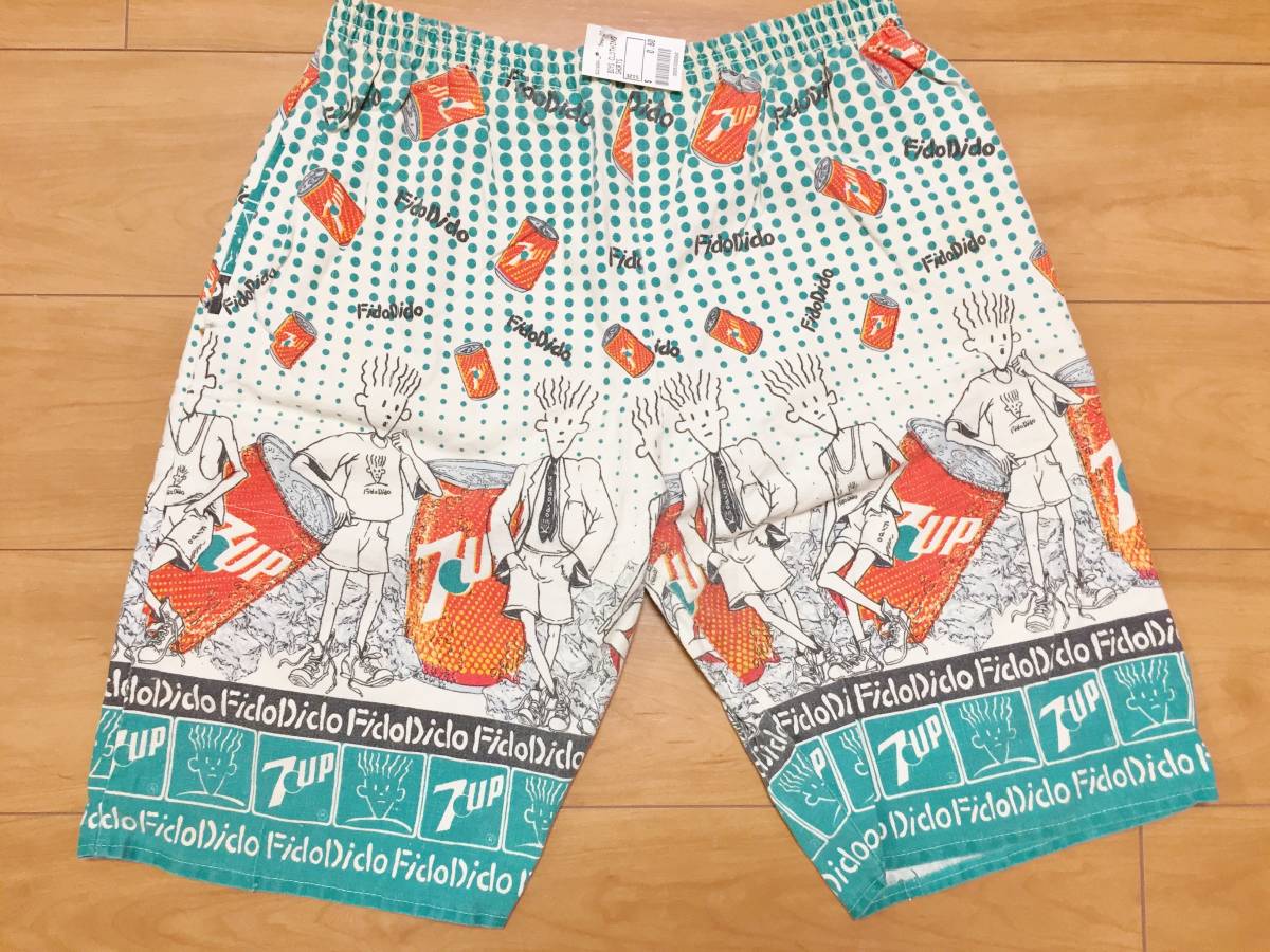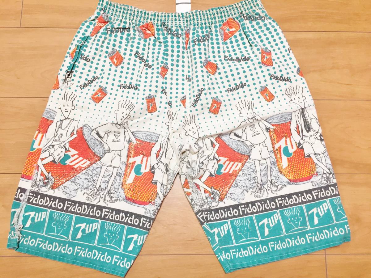 ・7UP総柄なホットパンツ、染み込みプリント、スリフトタグ付き。コットン100%生地、横に両ポケあり
