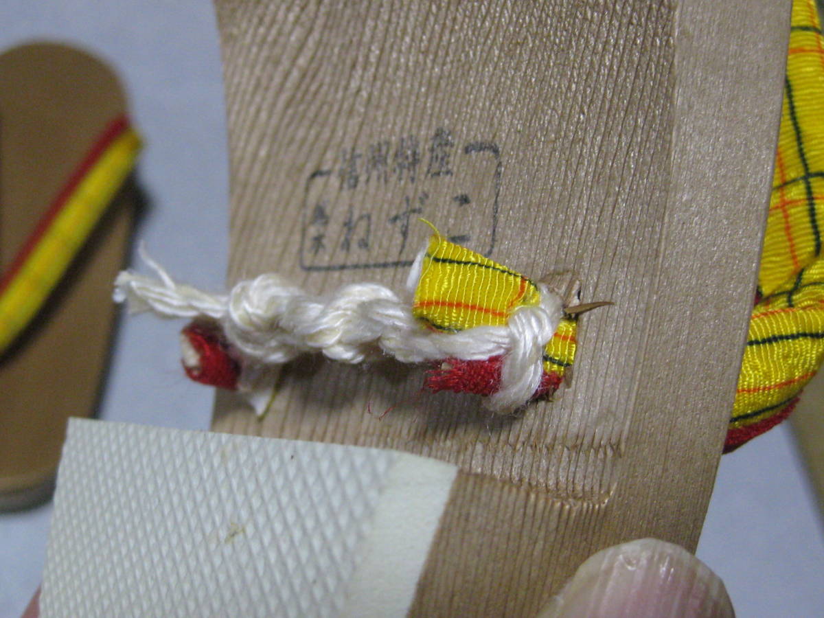 アクセスありがとうございます。「ねずこ」(別名:黒檜(クロベ))は、信州特産の銘木で 木曽五木のひとつで日本特産のヒノキ科常緑高木です。軽くて湿気に強く、下駄にして履くと、さらさらとした感触が心地よいとのことです。赤色、黄色の鼻緒が大人カワイイ下駄です。裏はゴムが貼っています。