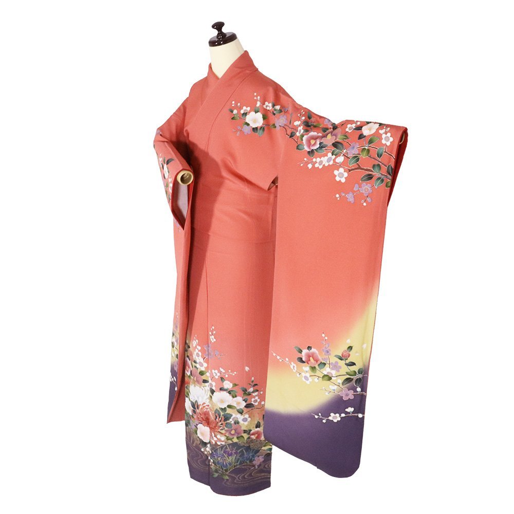 | 本振袖 袷 丹後縮緬地 濃いピンクぼかし地梅椿菊 176 広襟 トールサイズ | |