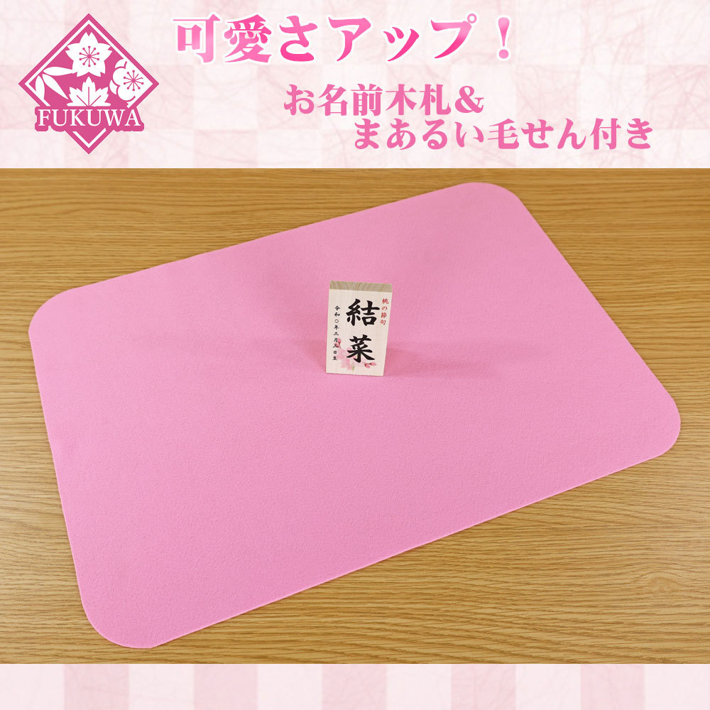 「お名前木札」と「まあるい毛せん」をプレゼント致します。