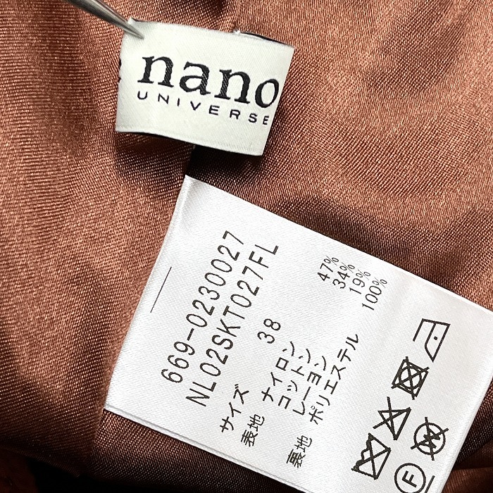 | 商品タイトル | nano・universe コーデュロイ 花柄 パネルスカート スカラップ ミニフリンジ ウエストゴム ナイロン×綿など 38 ブラウン レディース |