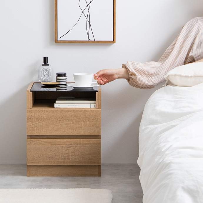 また、幅35cmとコンパクトなサイズは省スペースで置けるので、ベッドやソファサイド、ワンルームなど限られたスペースにもすっきり置いていただけます。