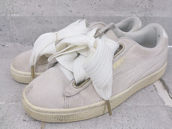 ◇ Puma プーマ 36271404 Suede Heart Satin Wmns スニーカー シューズ 22.5 ベージュ レディース