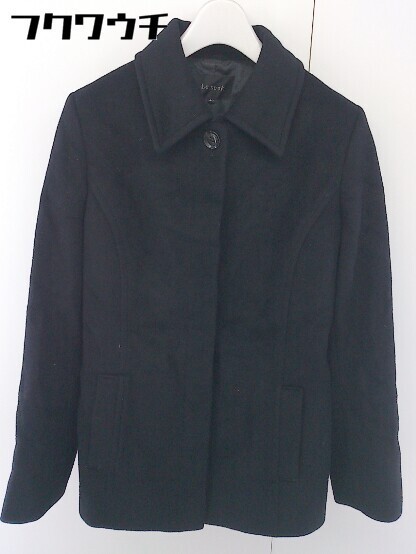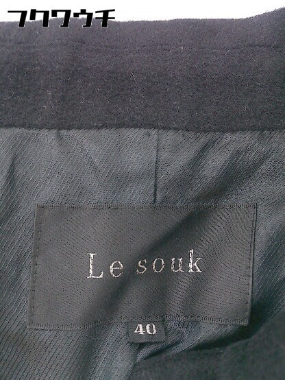 ■ ◎ LE SOUK ルスーク ウエストリボン付き アンゴラ混 長袖 ジャケット サイズ40 ブラック レディース