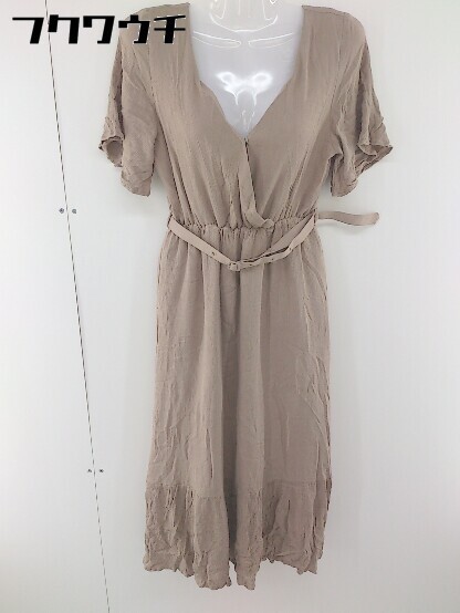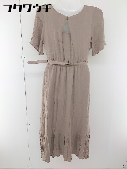 ◇ ◎ natural couture NICE CLAUP カシュクール ウエストゴム 五分袖 膝下丈 ワンピース サイズF ブラウン レディース
