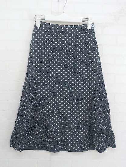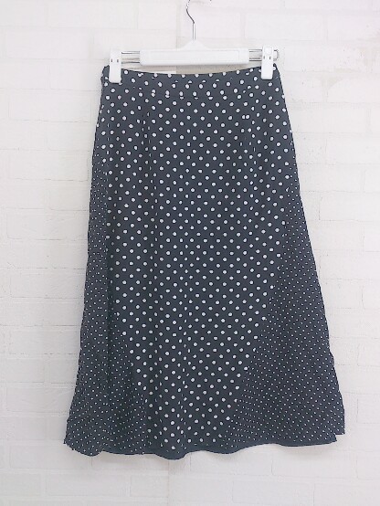 ◇ Spick & Span スピック アンド スパン ドット柄 膝下丈 フレア スカート サイズ34 ネイビー ホワイト レディース P