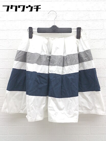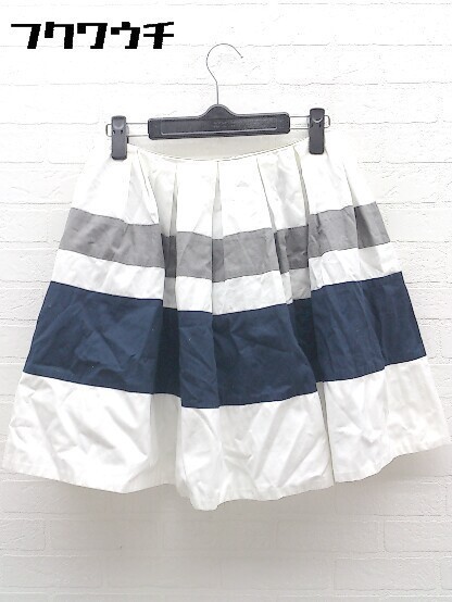 ◇ Lois CRAYON サイドジップ ボーダー ミニ プリーツ スカート サイズM ホワイト グレー ネイビー レディース