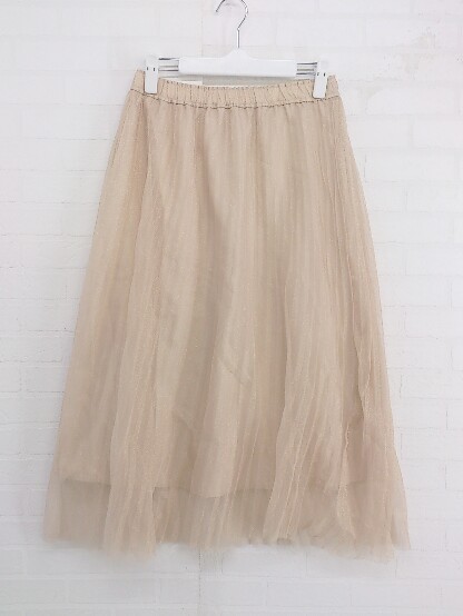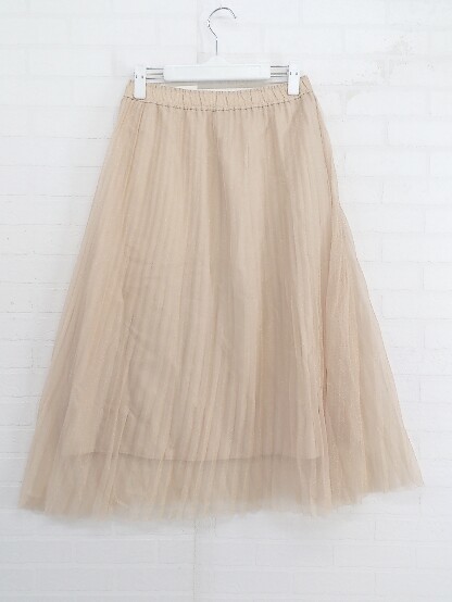 ◇ fredy emue フレディ エミュ チュール ラメ ロング プリーツ スカート サイズ36 ベージュ系 レディース P