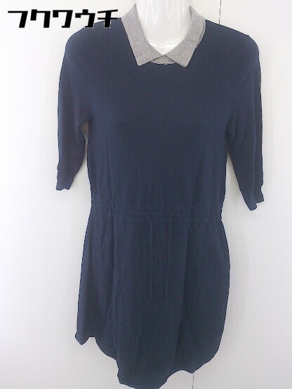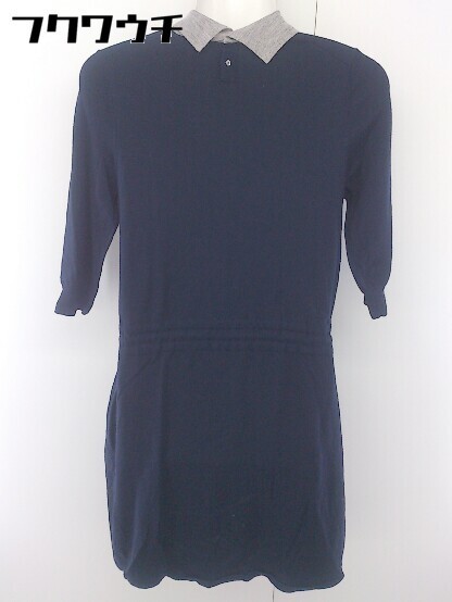 ◇ MACPHEE マカフィー TOMORROWLAND 七分袖 ミニ ニット ワンピース サイズ38 ネイビー グレー系 レディース