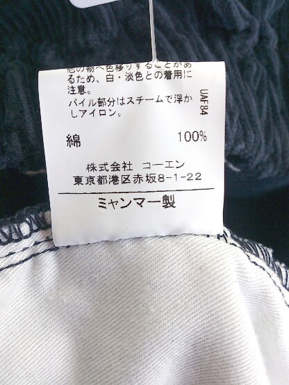 ◇ coen コーエン ウエストゴム コーデュロイ 膝下丈 タイト ナロー スカート サイズM ネイビー レディース P
