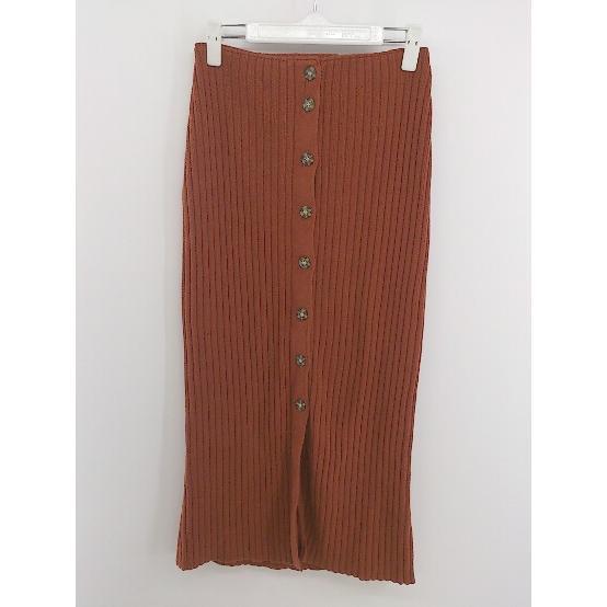 ◇ MOUSSY マウジー フロントボタン スリット ロング タイト ニット スカート サイズ1 テラコッタ ブラウン系 レディース P