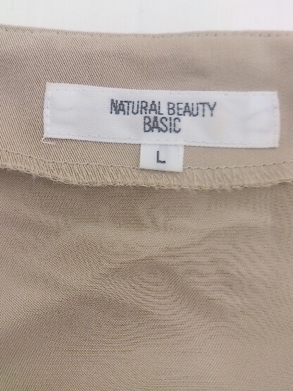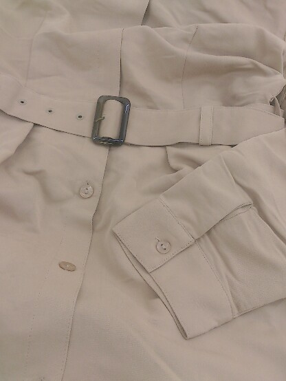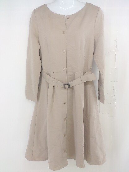 ◇ ◎ NATURAL BEAUTY BASIC ウエストベルト ノーカラー 長袖 膝丈 ワンピース サイズ L ベージュ レディース