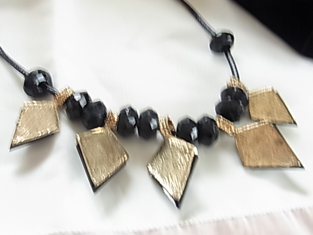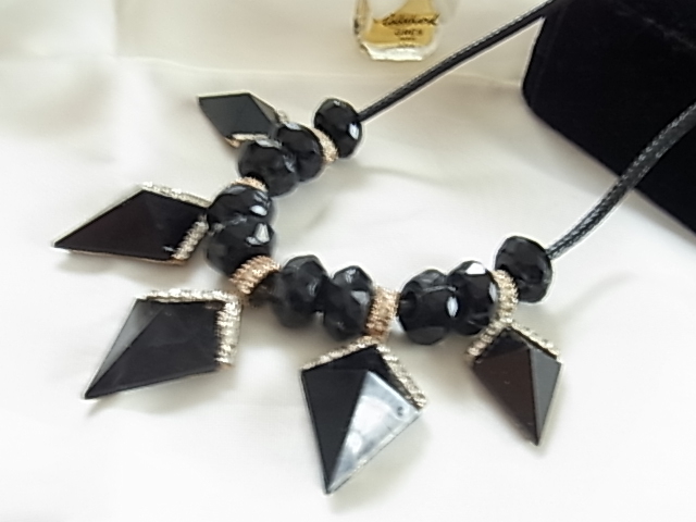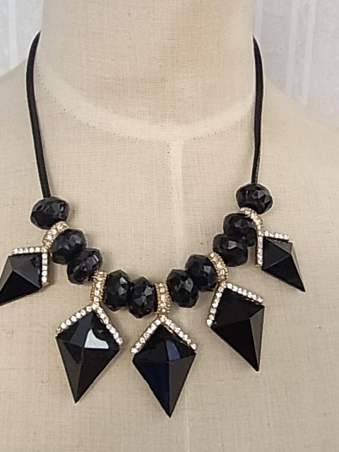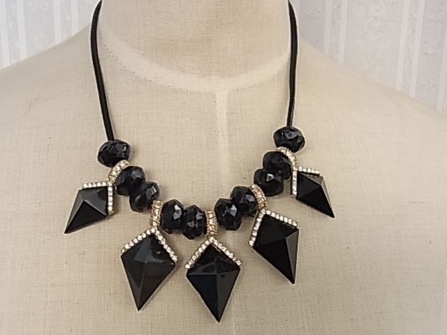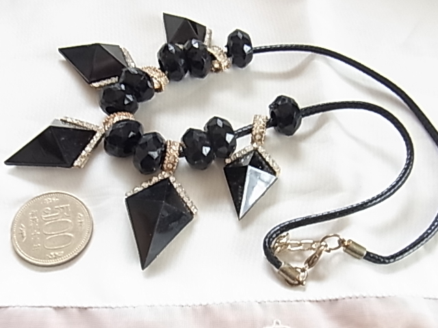 綺麗な黒色 ブラックカラー そろばん珠みたいなストーンにクリアラインストーンが輝くカッティングが綺麗なチャームのネックレス☆☆