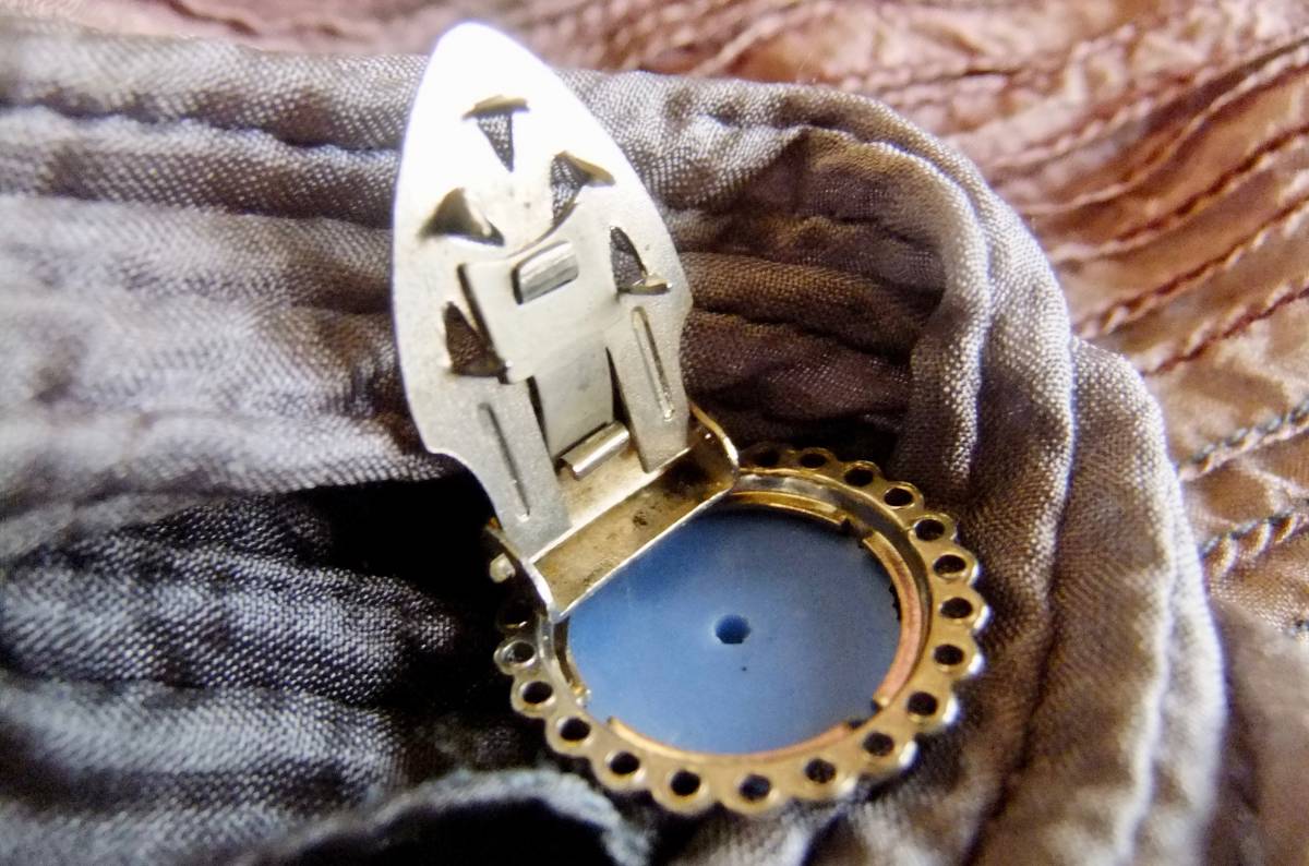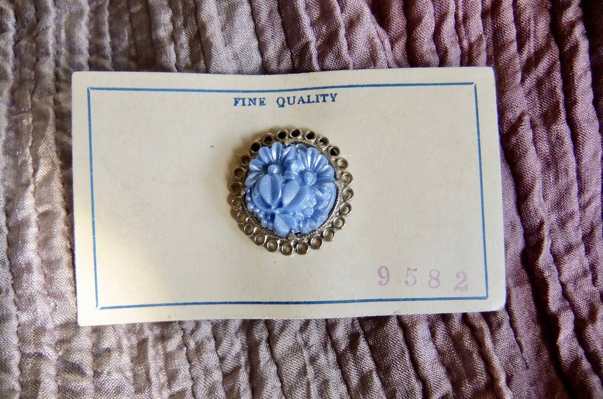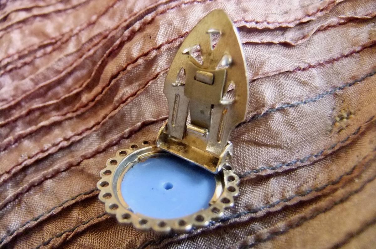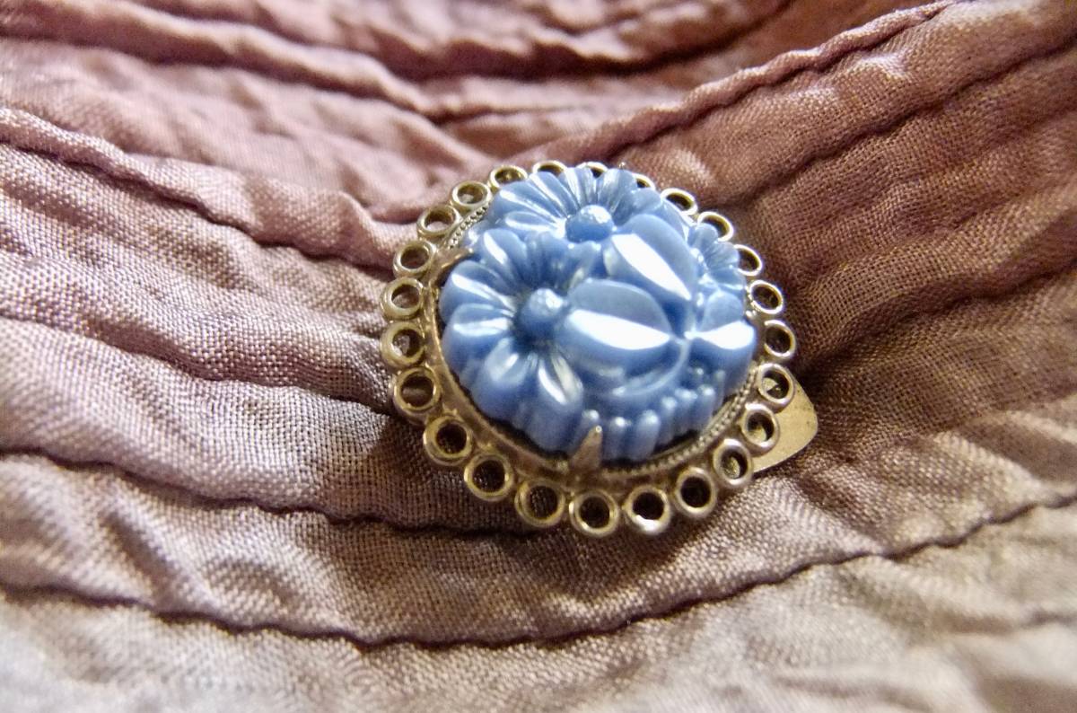 1930年代頃のアンティーク品、プラスチックの花柄ストーン、シルバーカラーのドレスクリップ。