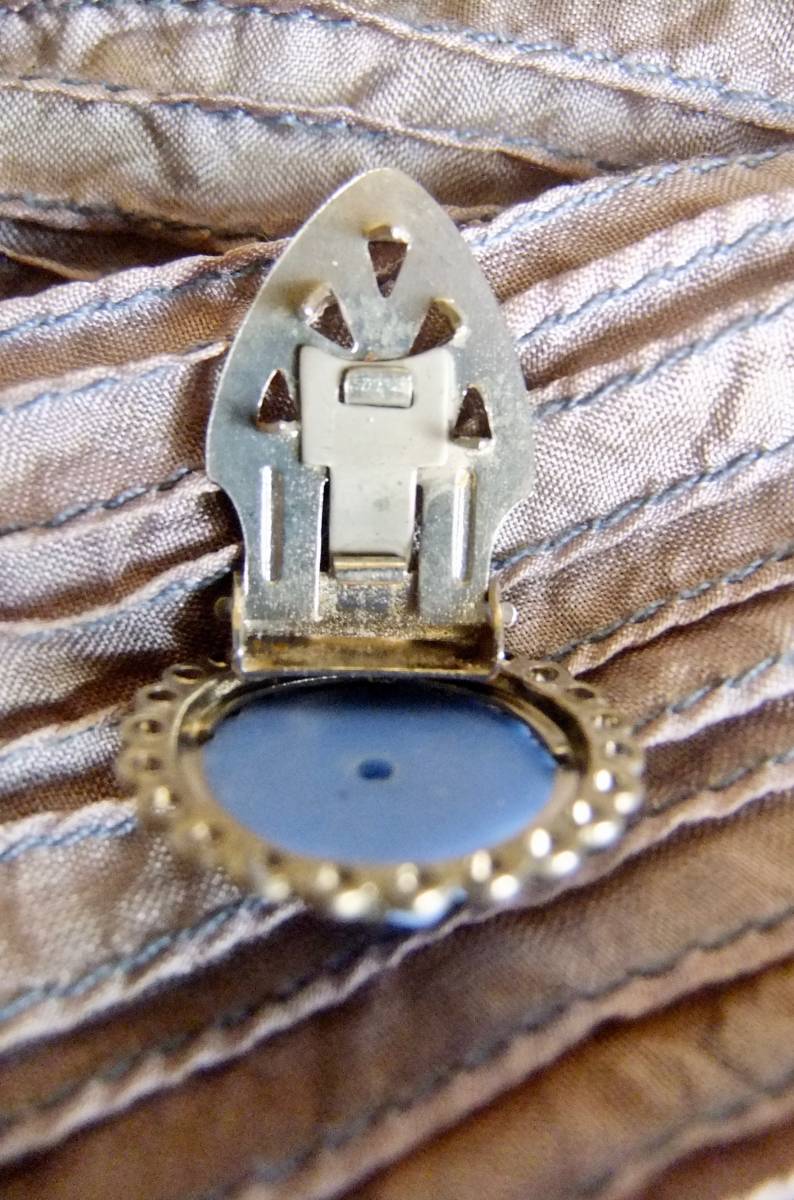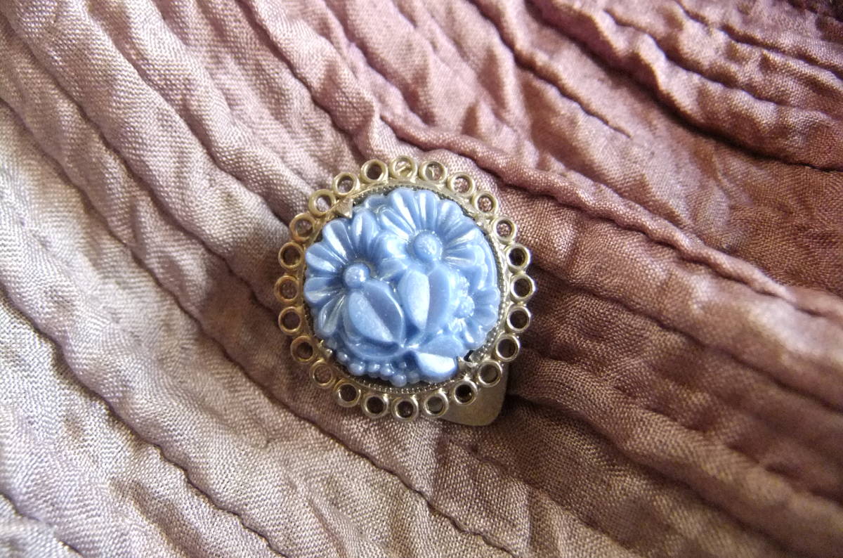 アンティーク:プラスチックの花柄ストーン、シルバーカラーのドレスクリップ